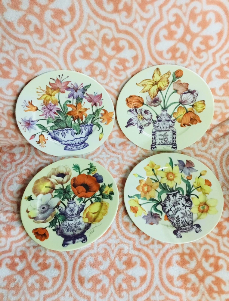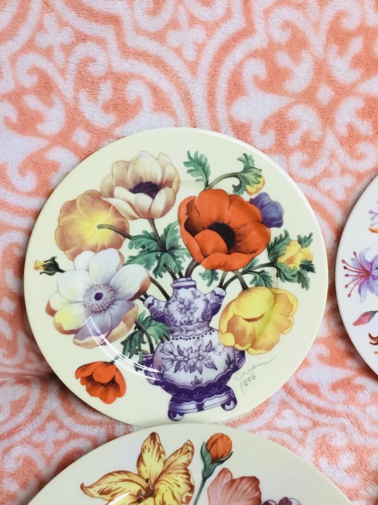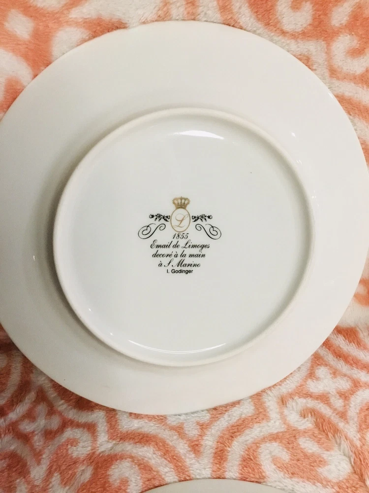 4 email de Limoges I godinger floral salad plates 7.5” artist signed 1996 vintage. In very good condition