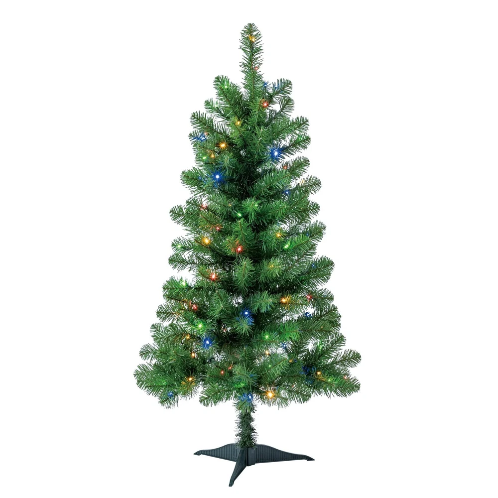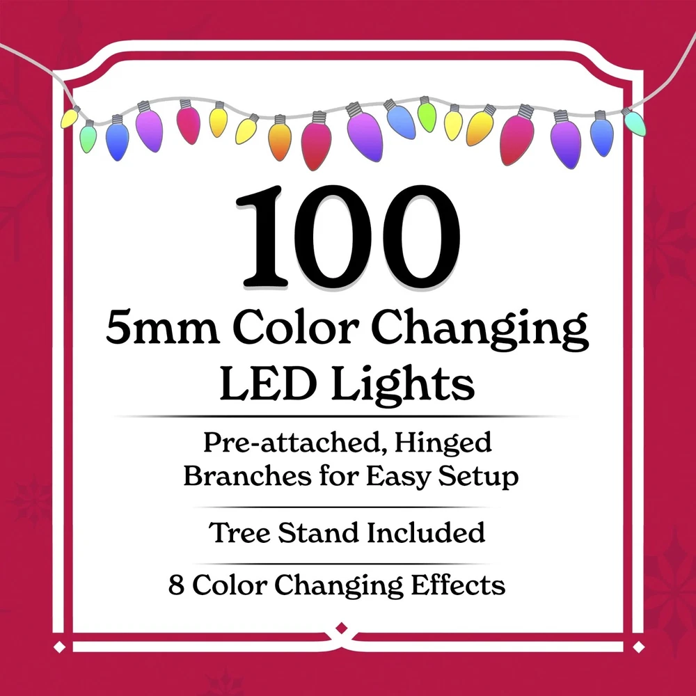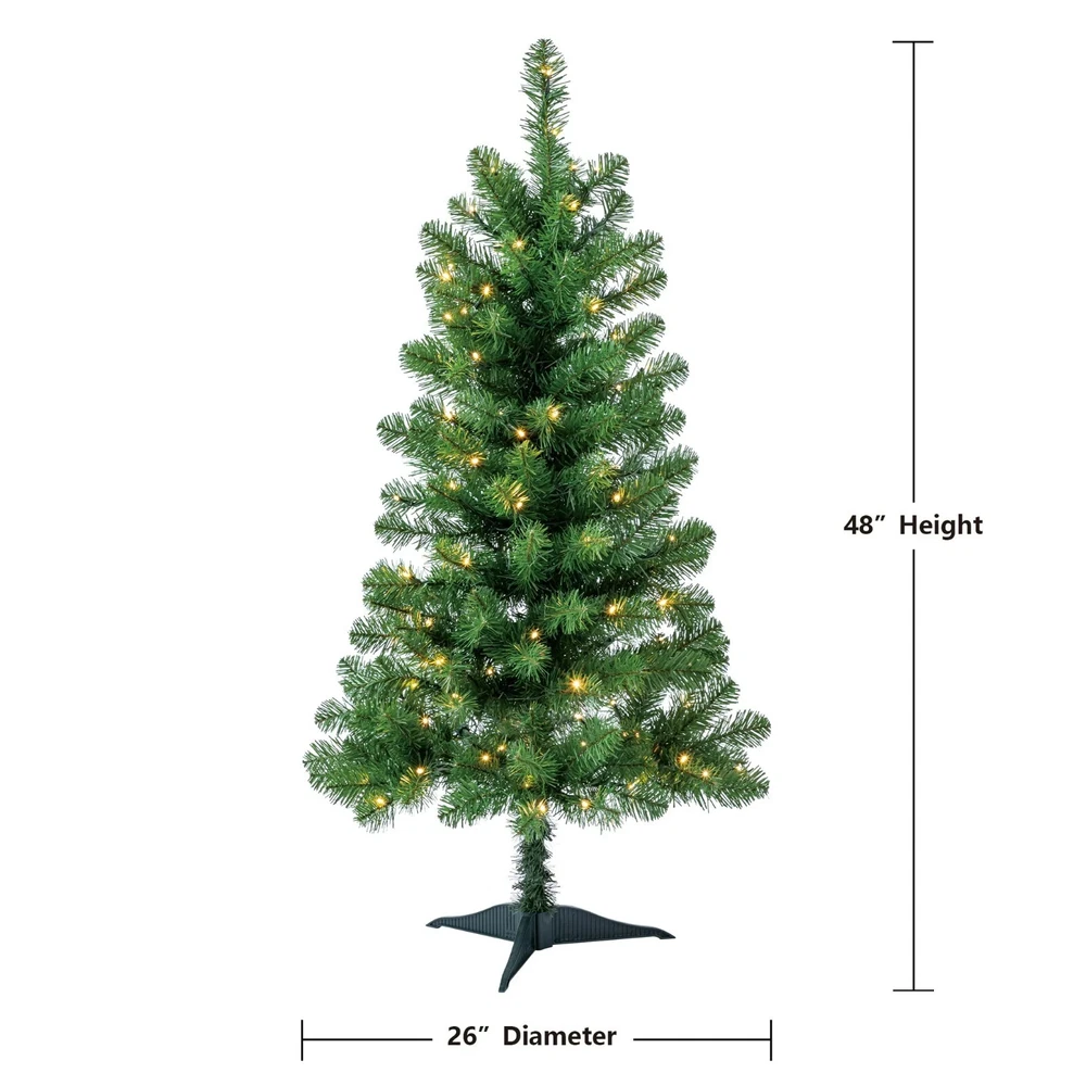 4 ft Pre-Lit Indiana Spruce Artificial Christmas Tree with Color-Changing LED Lights, by Holiday Time Warehouse in USA and Free Shipping in USA Product details The Holiday Time 4ft Pre-lit Indiana Spruce artificial Christmas tree is the perfect choice to deck your home with festive splendor. Featuring 100 color-changing LED lights, pre-strung for your convenience, your space will be brightened heartily with Christmas cheer. These LED lights have 8 different light effects for an amazing display. Set up this artificial spruce easily with pre-attached hinged branches by sliding the tree sections together. Once the tree is assembled, your treasured ornaments will have a suitable showcase as you hang them on the lush, green 175 branch tips. Verdant and full, this artificial spruce tree also has a sturdy top branch where the tree topper of your choice will sit securely and look beautiful to onlookers. To help your Christmas tree stand firmly all season, a plastic stand is included, so there is no danger of the tree toppling over. Rustic and lifelike, the Holiday Time 4ft Pre-lit Indiana Spruce artificial Christmas tree adds wonder to your festivities. Holiday Time 4' Pre-Lit Indiana Spruce Artificial Christmas Tree, Color-Changing LED Lights 175 branch tips 100 pre-strung color-changing LED lights Tree stand included Easy setup - slide the tree sections together for quick display Pre-attached hinged branches for easy setup 8 function light controller Extra sturdy top branch for your tree topper For indoor use only Flame-retardant Color: Green 2.17ft diameter Product Dimensions: 26" W x 26" D x 4' H Model #: TG40FH321D01 Specifications Brand Holiday Time Christmas Tree Type Artificial Christmas Trees Christmas Tree Shape Triangular Prelit Y Number of Lights 1 Light Bulb Type LED Light Bulb Color Clear Light Functions Color Changing Theme Christmas Material PVC;IRON WIRE; COPPER; PP;GPPS Color Green Recommended Location Indoor Power Type Corded Electric Cord Length 1.9 m Assembled Product Weight 3.86 lb Manufacturer Part Number TG40FH321D01 Assembled Product Dimensions (L x W x H) 30.00 x 30.00 x 7.50 Inches Warranty Warranty information 2-YEAR LI Thank you for choosing my store and hope all the best things will come to you!