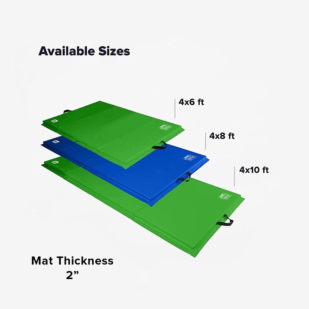 Padded Protection - Get the padded protection you need for your home workouts with 4' x 6' Folding Exercise Mat, available in 3 sizes with 2" foam thickness for added comfort. Lightweight & Foldable - The lightweight and foldable design of this gym mat makes it easy to carry and store, perfect for personal trainers, athletes, and indoor/outdoor workouts. Personal Fitness Solutions - Designed for personal fitness and bodyweight exercises, this ultra-durable and sturdy cross-linked foam gym floor mat is ideal for push-ups, sit-ups, squats, lunges, and more. Extra Support for Home Fitness: Ultra-durable and sturdy cross-linked foam is designed to handle personal fitness and bodyweight exercises such as push-ups, sit-ups, crunches, squats, lunges and more. Hassle Free Cleaning - The vinyl surface of our folding exercise mat resists tearing and is easy to clean with a simple soap and water solution, ensuring hassle-free clean-up after your workout.