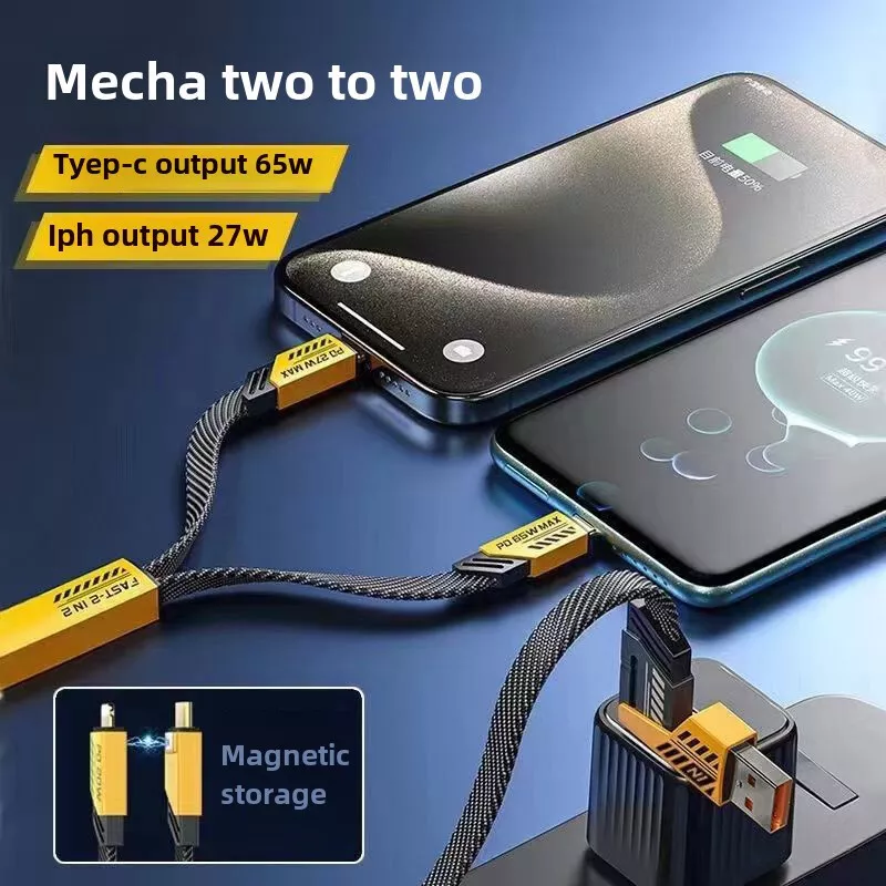 arameters: Product material: ABS + Aluminum alloy Length: 1.2m(1%-1.5% discrepancy ) Input interface: TYPE-C / USB Output interface: USB TO / For IOS Working voltage: 5V-20V Power: Downward with 65W, IOS27W Features: 1. [Multi Protocol Adaptation]: Used on multiple device models, supporting iPhone/MacBook/iWatch/Airpod, Charging Adapter, Smart Watch, Headphone, Smartphone 2. [Fast Charging]: When used with the fast charging protocol charging head, it can be charged to 80% in 40 minutes. It supports IOS27W fast charging and For Android 65W fast charging. It also suport Your own original fast chargine head too. 3. [Multi Charging Cable]: The USB C cable can be used to charge multiple devices at the same time. It has three different interfaces: USB A to C, USB C to C, USB C to L, and USB A to L. You can use it to charge your iPhone, iPad, MacBook, Android phones, and other devices. 4. [Bold Wire Core]: The 4 in 1 USB type C cable is made of flat braided nylon fiber, which is more flexible, and tangle-free than traditional cables. It is also anti-winding, which can effectively prevent the cable from tangling and knotting, and save you a lot of time and effort. 5. [High Speed Transmission] 480Mbps/S transmission speed, charging/data transmission synchronized. 6. [with Various Devices] :The USB C cable is with various devices, including the latest iPhone, iPad, MacBook, Android phones, and other devices. Note: 1. Please allow a bit error due to manual measurement. please make sure you do not mind before you bid. 2. The color may have different as the difference display, please understand.