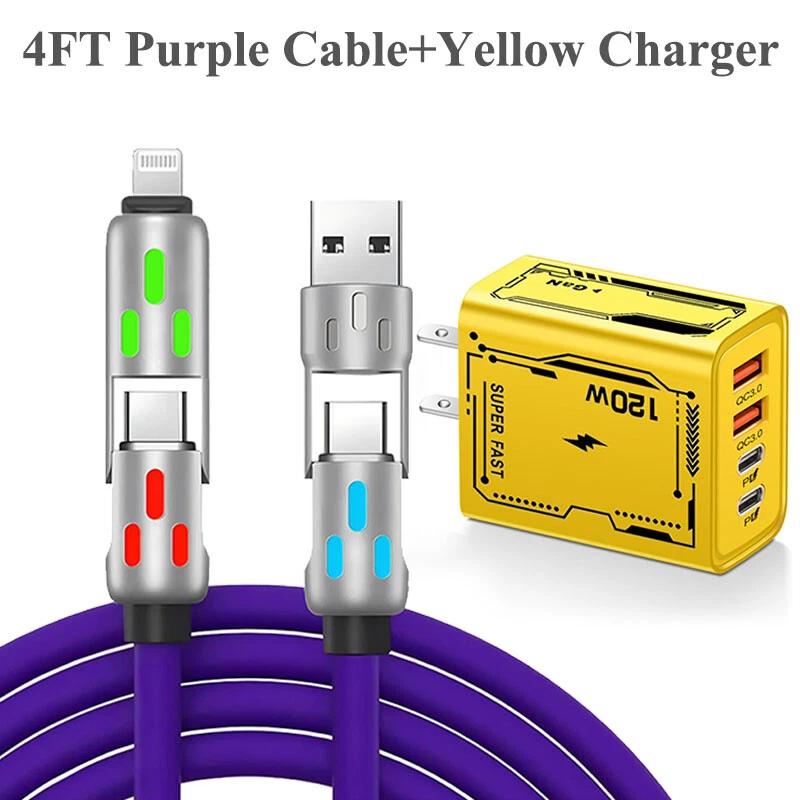 4 in 1 USB C Cable 240w Fast Charging & Data Sync Multi Silicone RGB Charge Cord