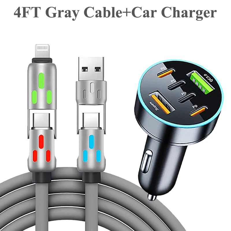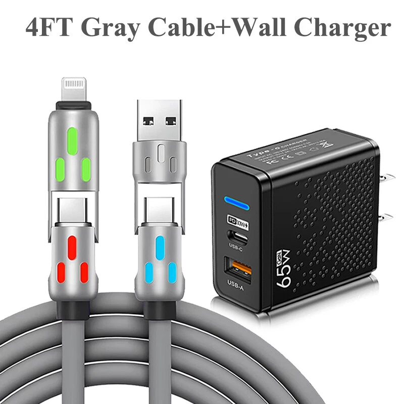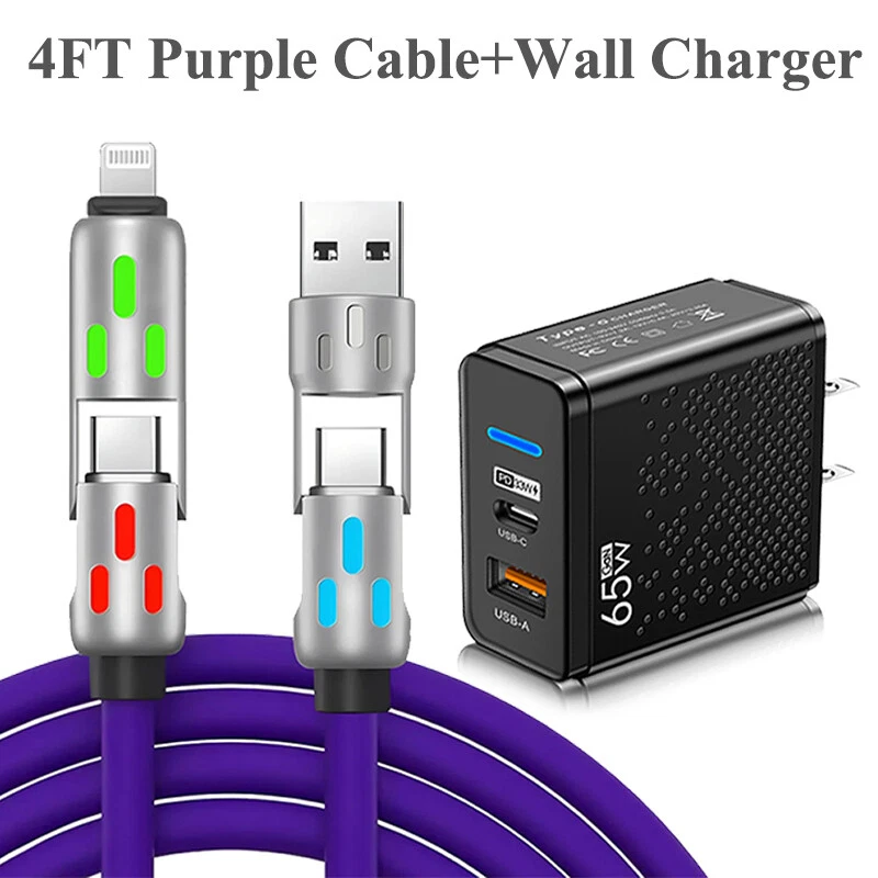 4 in 1 USB C Cable 240w Fast Charging & Data Sync Multi Silicone RGB Charge Cord