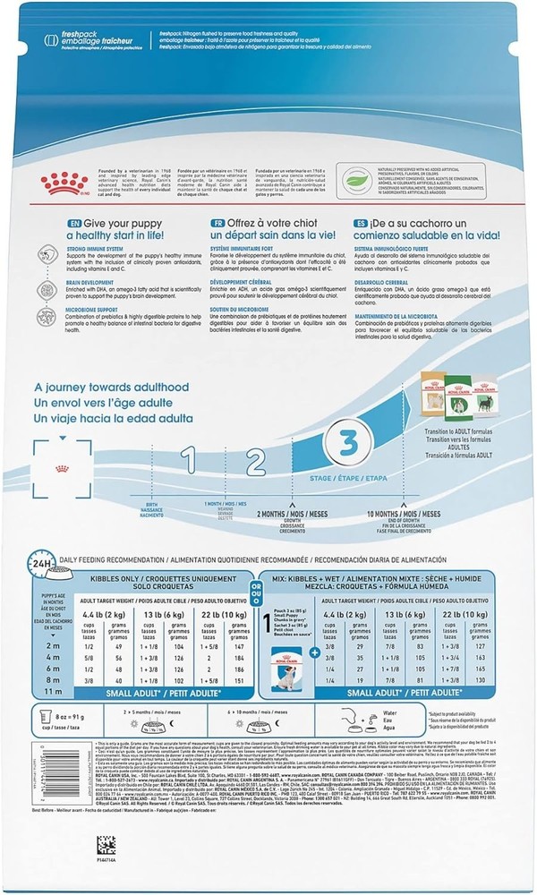 4 lb Royal Canin Small Puppy Food - Supports Brain & Digestive Health ‹ › ‹ › ‹ › ‹ › ‹ › ‹ › ‹ › ‹ › ‹ › ‹ › ‹ › ‹ › 4 lb Small Breed Puppy Food Supports Brain & Digestive Health Product Highlights: Designed specifically for small breed puppies aged 2 to 10 with an expected adult weight of 9 to 22 lbs Crispy and crunchy kibble that is easy to serve Pairs perfectly with Small Puppy Thin Slices in Gravy for a mixed feeding experience Supports healthy brain development with DHA and omega-3 fatty acids Rich in antioxidants to bolster the immune system Includes prebiotics and proteins that promote digestive health Quality ingredients with meticulous attention to detail for effective nutrition A range of tailored nutrition options available, catering to dogs of all sizes and breeds Benefits: Promotes healthy growth and development during your puppy's crucial early Encourages a strong immune response, thanks to antioxidants Supports digestive health for better nutrient absorption Balanced nutrition adapts to the energetic needs of small breed puppies Designed to create a delicious mealtime experience Why Choose Our Small Breed Puppy Food? Your small puppy deserves the finest nutrition to support their growth and development. This specially formulated puppy food is not only delicious but crafted with high-quality ingredients that bolster brain function and digestion. With crunchy kibble that your puppy will love and tailored nutrition that ensures their health on every level, you can feel good about the meals you serve. Choose this small breed puppy food for a healthy start in life and the nutrition your puppy needs to thrive. Make every meal count with Small Breed Dry Puppy Food - your puppy is worth it! Shipping Free & Fast Shipping - We offer free shipping to most of the USA with a normal delivery time of 3-7 days. However, due to the current situation, additional delivery time (up to 3 weeks) may be required for some items. Alternative Carriers - We may use alternative carriers (e.g. USPS, FedEx, UPS, etc.) to ensure your package arrives safely and on time. Due to the use of multiple carriers, we are unable to provide a tracking number automatically. Handling Time - Orders are processed and shipped within 1-2 business days of receiving cleared payment. Shipping Restrictions - Shipping to Alaska, Hawaii, Puerto Rico, Guam, and other US territories may incur shipping charges or delivery restrictions. Please contact us before ordering, or your order can be refunded/cancelled. State Restrictions - There may be restrictions based on your state of purchase. For example, certain items may not be shipped to California due to state regulations. Contact for Tracking Updates - If you require tracking updates or have any concerns about the delivery of your order, please feel free to contact us, and we will be happy to assist you. Return 30-Day Hassle-Free Returns - We want you to be completely satisfied with your purchase. If you are not, you can return the item within 30 days of receiving it for a full refund or exchange. Easy Return Process - To start a return, simply contact us and we will provide you with a prepaid return shipping label and detailed instructions. Restocking Fee - There are no restocking fees for returns. However, the buyer is responsible for return shipping costs if the return is not due to a seller's error. Refund Processing Time - Refunds will be processed within 5 business days of receiving the returned item in its condition. Payment We accept all major credit cards, PayPal, and Apple Pay for your convenience. Your payment information is secure and encrypted to ensure a safe and seamless transaction. Please complete your payment within 3 days of purchase to avoid any delays in shipping. Feedback Your feedback is extremely important to us. We strive to provide the best products and customer service possible. If you are satisfied with your purchase, please take a moment to leave us a positive review. If you have any concerns or issues with your order, please contact us before leaving negative feedback. We are committed to resolving any problems and ensuring your satisfaction. Contact Us If you have any questions or concerns, please feel free to out to our customer support team. You can contact us through the eBay messaging system. We are available Monday to Friday, 9:00 am to 5:00 pm EST, and we will do our best to respond to your inquiry within 24 hours. Buy it now and enjoy a pleasant shopping experience! Model: Small Puppy Dog Food MPN: Small_Puppy_Dog_Food Expiration Date: Small Puppy Dog Food Unit Quantity: 1 Dog Size: Extra Small,Small,Medium,Large,Extra Large Features: Gluten Free,Grain Free,High Protein,Low Fat,Organic,Hypoallergenic,Mixed Feeding,Immune Support,Digestive Health,Brain Development Type: Dry Food Life Stage: Puppy Main Ingredient: Chicken Dog Breed: Small Breeds