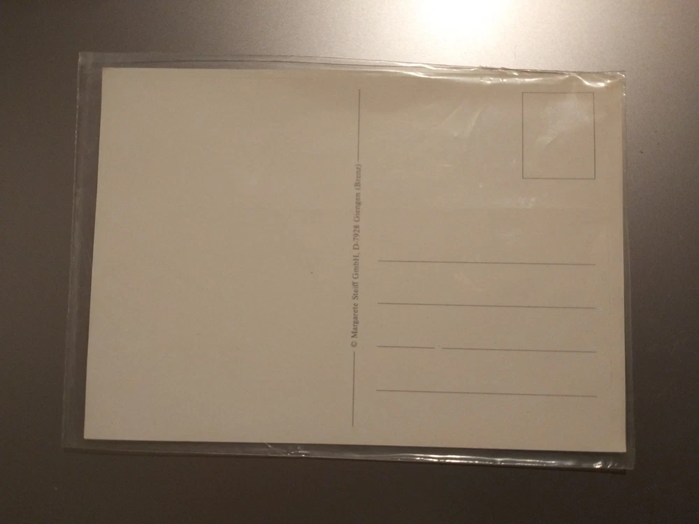 Tauchen Sie ein in die magische Welt von Steiff mit diesem exquisiten Satz von 4 unbeschrifteten Postkarten, die jeweils ein entzückendes Familienmotiv der Familie mecky zieren. Diese Original-Karten aus den Jahren 1980-1989 spiegeln die Tradition und den Charme der Nachkriegszeit wider und sind ein zeitloses Andenken an die festliche Zeit. Hergestellt in Deutschland, vereinen diese Karten die Liebe zur Kunst und zu Tieren, die sie zu einem wahren Schatz für Sammler und Liebhaber macht. Die hochwertige Kartonqualität sichert Langlebigkeit und Freude an diesen edlen Stücken, die sowohl als Dekoration als auch als Teil einer anspruchsvollen Sammlung dienen können. Privat Verkauf keine Garantie und keine Rücknahme und Ausschluss jeglicher Gewährleistung.