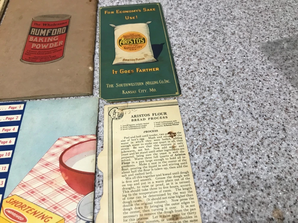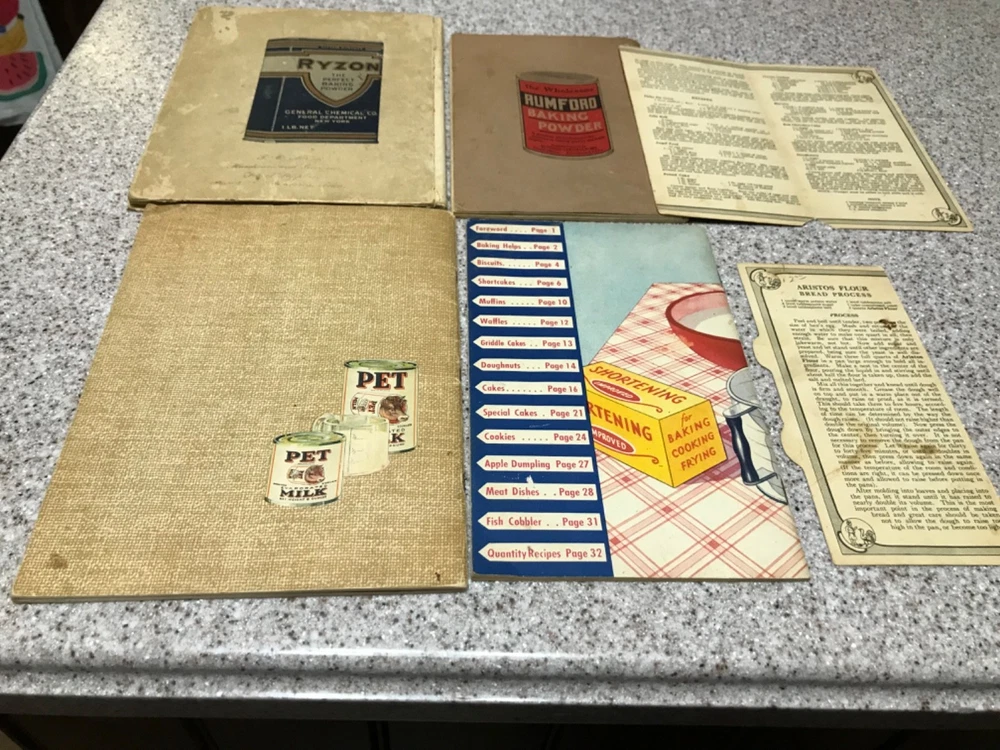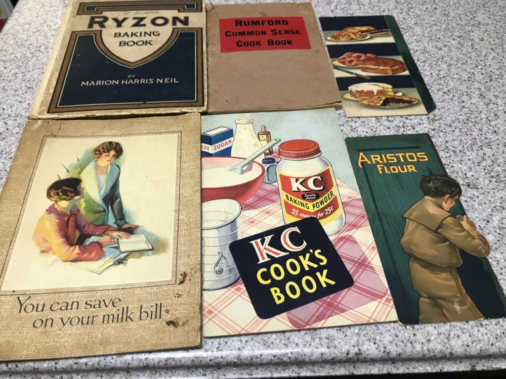 Ryzon book is from 1918. None of the others have a date. The Aristos is free because it is in 2 pieces and 1 recipe. It tells you to boil 2 potatoes the size of hens eggs. All of the others are firmly attached but were used a lot. The inside are fine