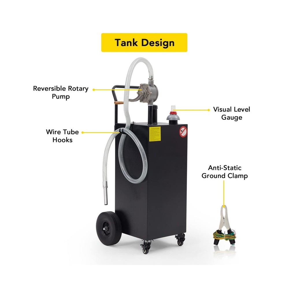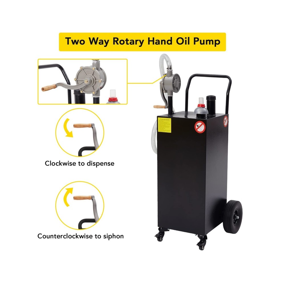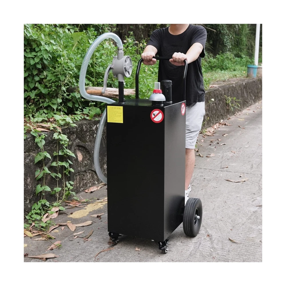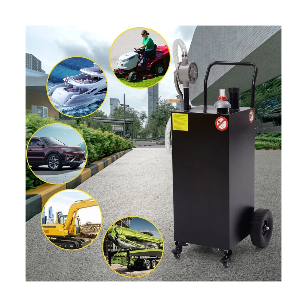40 Gallon Gas Caddy, Fuel Transfer Tank Gasoline Diesel Can Reversible Rotary Hand Siphon Pump, Fuel Storage Tank For Automobiles ATV Car Mowers Tractors Boat Motorcycle (Black) Description Features: The 8ft kink-free hose on the gas caddy enables quick and efficient tank filling by maximizing the flow rate. The tank's wide-diameter neck provides a larger fill opening to prevent spills and fuel wastage, enhancing the filling process. To ensure safety during filling, the gas caddy is equipped with an anti-static grounding clamp design that prevents accidental static discharges. This feature guarantees safe use when storing gasoline and diesel fuel. Designed for portability and user-friendliness, the gas caddy comes with wheels and a hand pusher for easy mobility. The vent/fuel level gauge allows for convenient monitoring of fuel levels, while the reversible rotary hand pump offers added convenience by minimizing waste. With its ample fuel storage capacity, this fuel transfer tank is ideal for storing fuel for a variety of gas-powered tools and vehicles, such as lawn and garden equipment, ATVs, and other fuel-powered machinery. Crafted from high-quality materials, the gas tank is robust and long-lasting. The heavy-duty iron tank is sturdy and resistant to deformation, ensuring a durable and reliable service life. Product Details: Brand: CuisinAid Fit Type: Vehicle Specific Fit Vehicle Service Type: ATV, Boat Material: Stainless Steel Body Material: Stainless Steel Fit Type: Vehicle Specific Fit Compatible with Vehicle Type: ATV, Boat Inlet Connection Type: Hose Connector Type: Hose Barb / Quick Connect Fitting Gas Type: Gasoline Mounting Type: Tank Mount Operation Mode: Mechanical Product Grade: New Material Type: Stainless Steel Body Material: Stainless Steel Hose Length: 8 Feet Brand Name: CuisinAid Manufacturer Part Number: GC40R Manufacturer: CuisinAid UPC: 198290839766 Item Type Name: Gas Caddy Included Components: Gas Caddy Manufacturer Warranty Description: 1 year Delivery We Do Not Ship Outside of the Continental US. Return Policy All items qualify for returns within 30 days of receipt. Buyer is responsible for return shipping on any item that is not damaged. Feedback We take our reputation seriously, we buy and sell online, so we understand the value of trust. If you are unsatisfied with your order, please contact us and we will work with you to resolve it to your satisfaction.