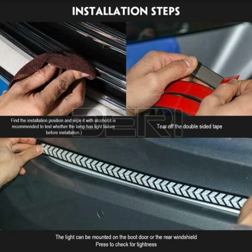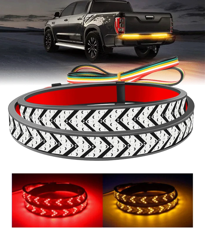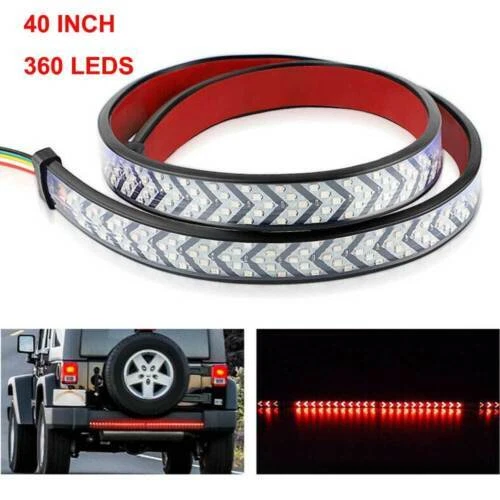 40" Inch LED Sequential Brake Signal Tail Reverse Light Bar Truck Tailgate Strip Specificatio ns: Use voltage: DC1 2V LED Light Source: 360 LEDs Lamp type: 2835 light source Shell material: PVC Waterproof Rate: IP68 Detail Size: Please check the size picture before ordering. Light length:40inch / approx. 100cm Multi-Function: See pictures for details Features: FULL FUNCTIONS: The arrow style tailgate light features full functions of brake, flowing turn signal, double flash, running and reverse light. BRIGHT LIGHTS: With 360pcs 2835 SMD led chips gives out the super bright beam. Adds clear visibility to the rear drivers, better ensuring safety trafic on roads! PREMIUM QUALITY: Adopts fully sealed silicone housing with IP68 waterproof rate, works good whatever in rainy or snowy days. With inline fuse for short circuit protection, heavy duty and super durable. QUICK INSTALLATION: No need to drill for installation. self-adhesive tape, can be easily stuck on any smooth surface, simple installation without screws required. UNIVERSAL FITMENT: This flexible light strip features 40 inch long, perfect for most Pickup, Trucks, Trailers, Cars, SUV, RV, VAN, etc. Package Included: 1X 40inch Truck Tailgate LED Tail Light Bar At last but no the least: 1.If you have any fruther question,please feel free to contact with us. 2.Do not leave any negative or netural feedback before contact us , we will try our best solve your problem and make you 100% satisfaction,thank you.