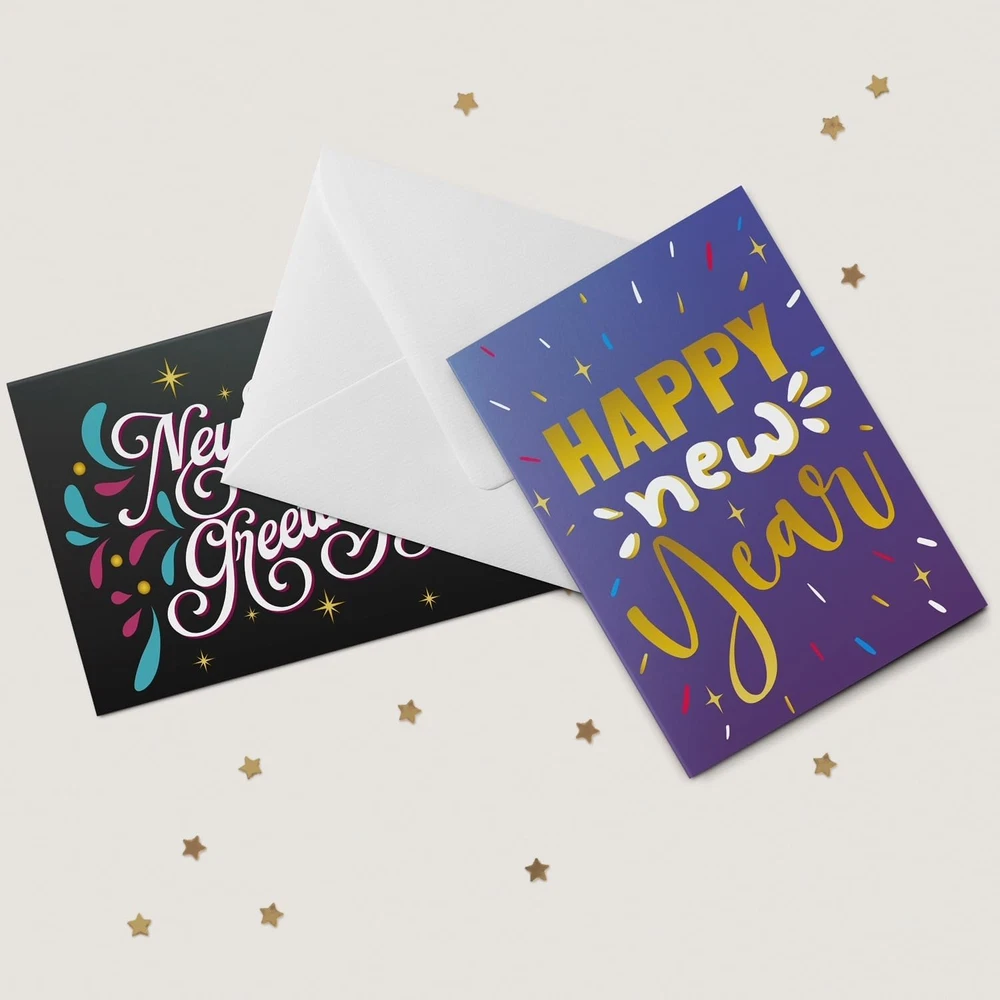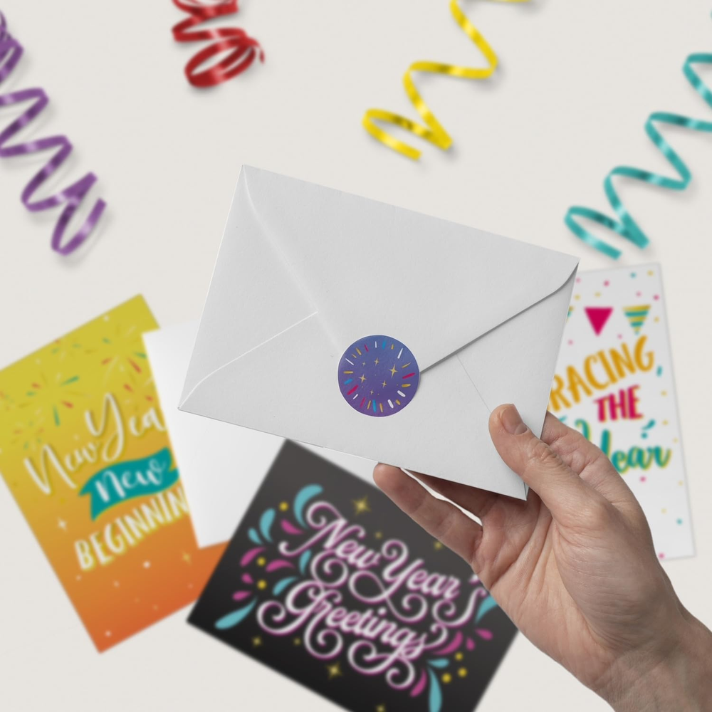 Absolutely love this New Year's card set! The gold foil adds such an elegant touch, and the variety of designs is perfect for sending warm wishes to everyone. The included envelopes and stickers make it so convenient—no extra shopping needed. Great quality, and the cards feel sturdy yet stylish. Perfect for bulk mailing or handing out to friends and family. Highly recommend for hassle-free holiday greetings!