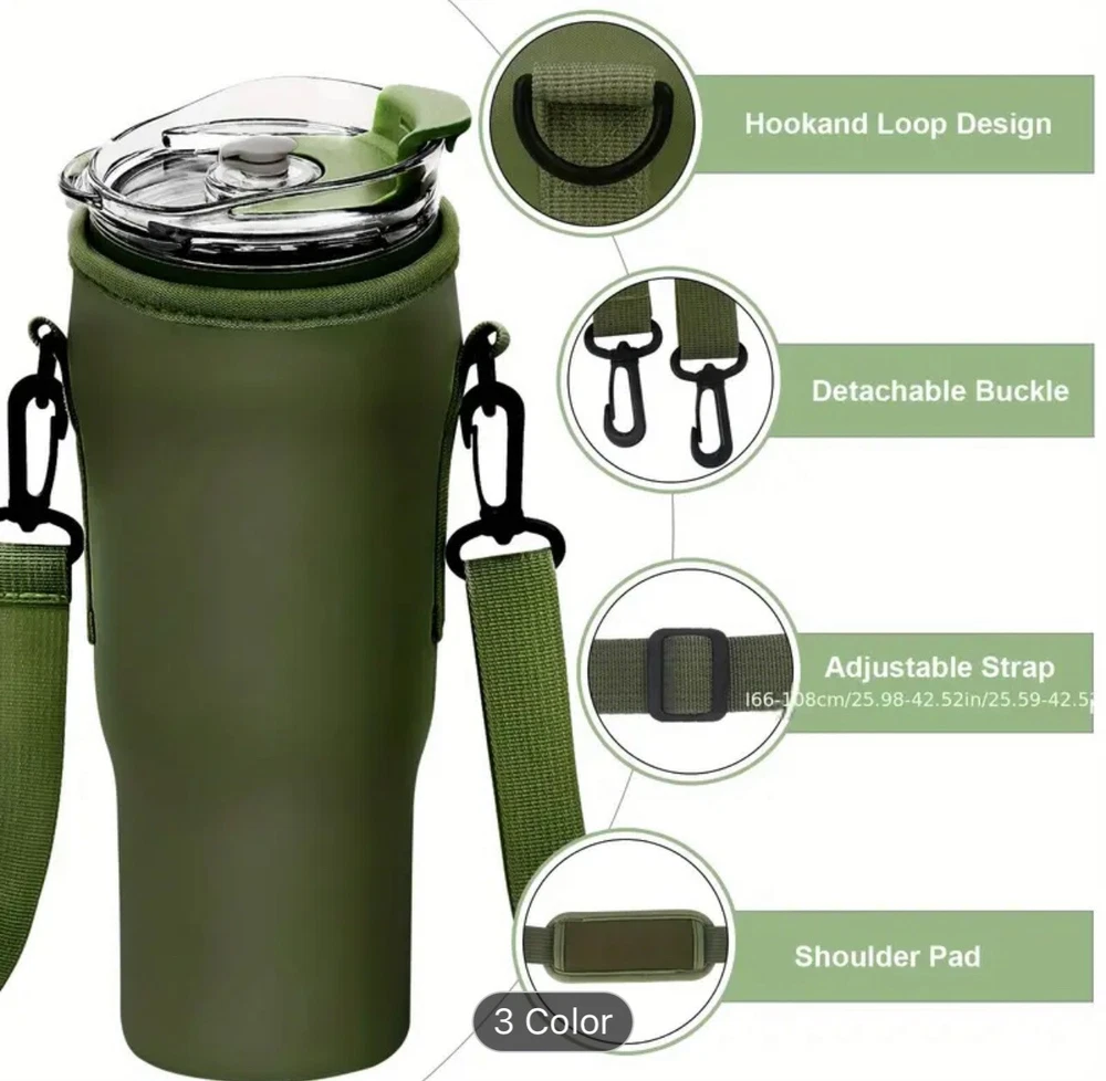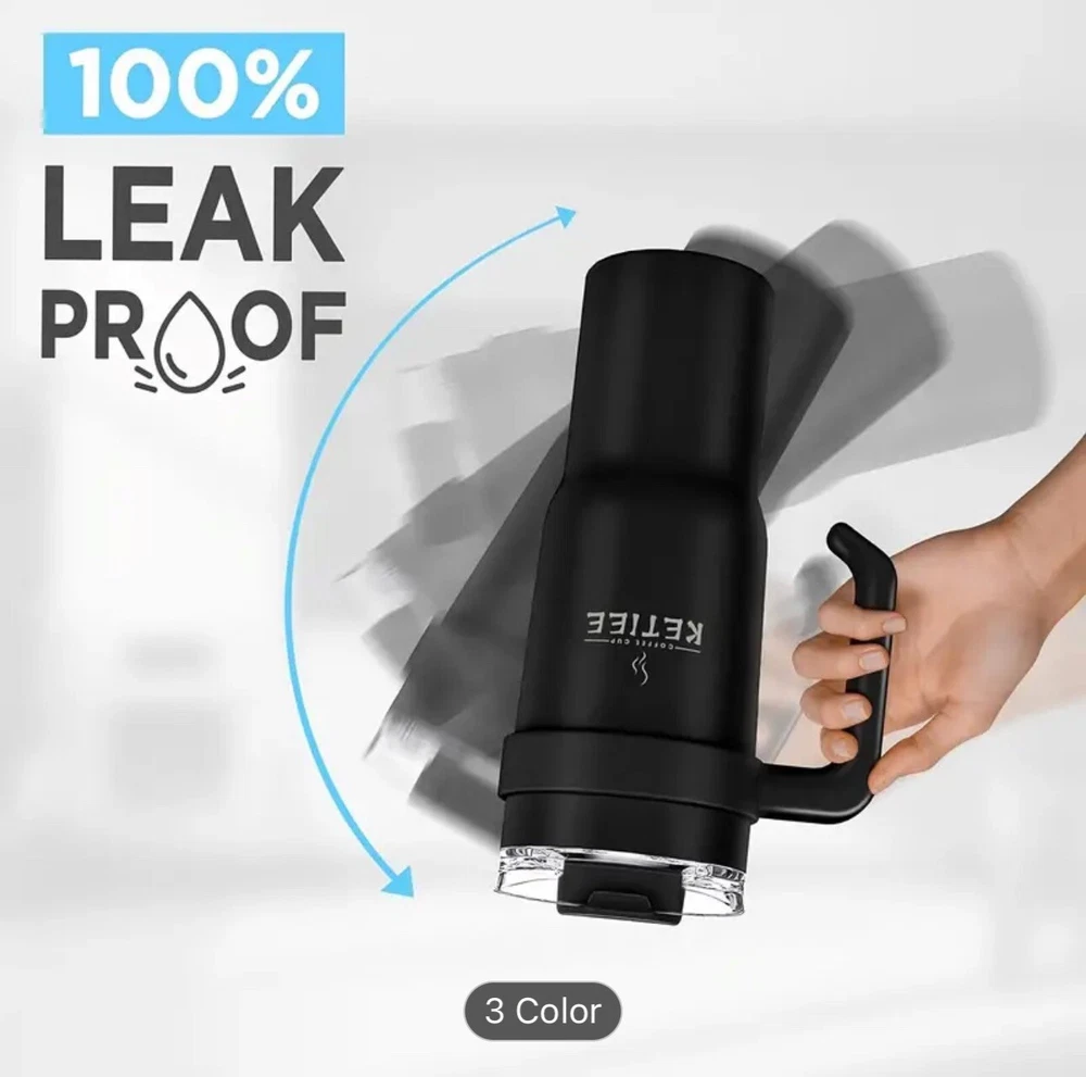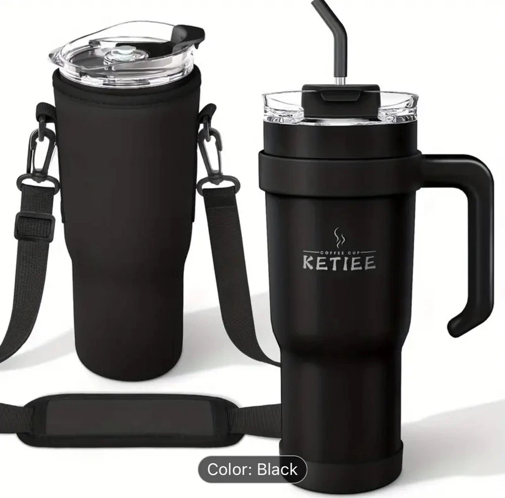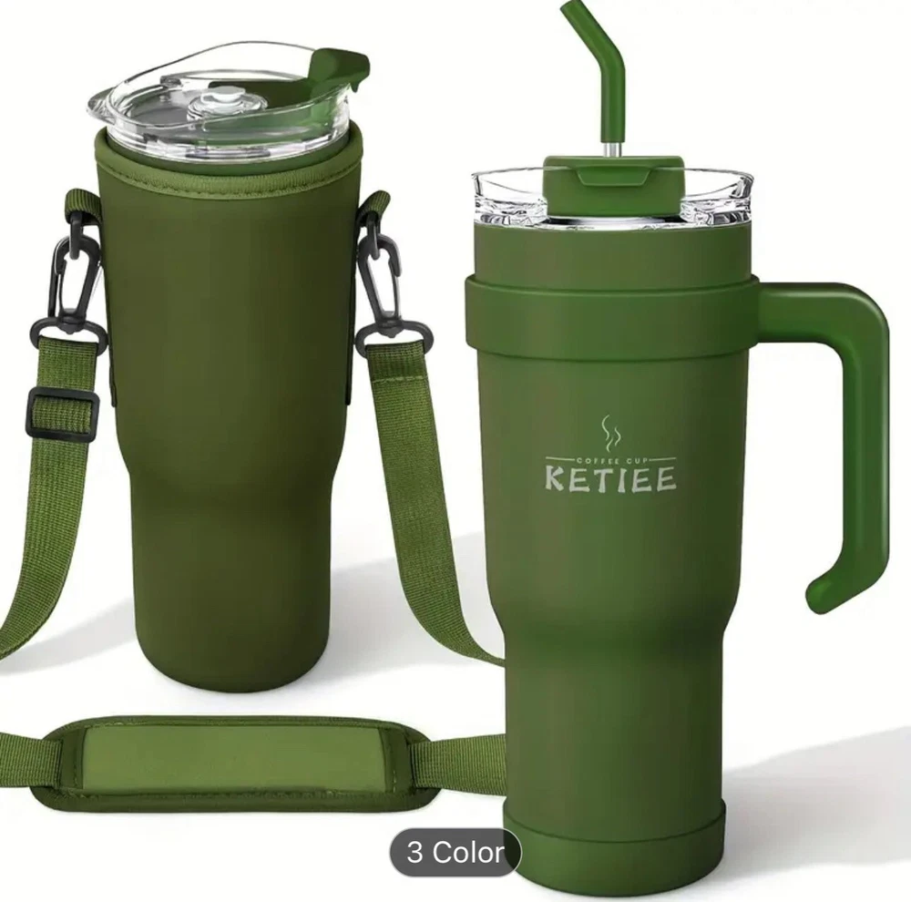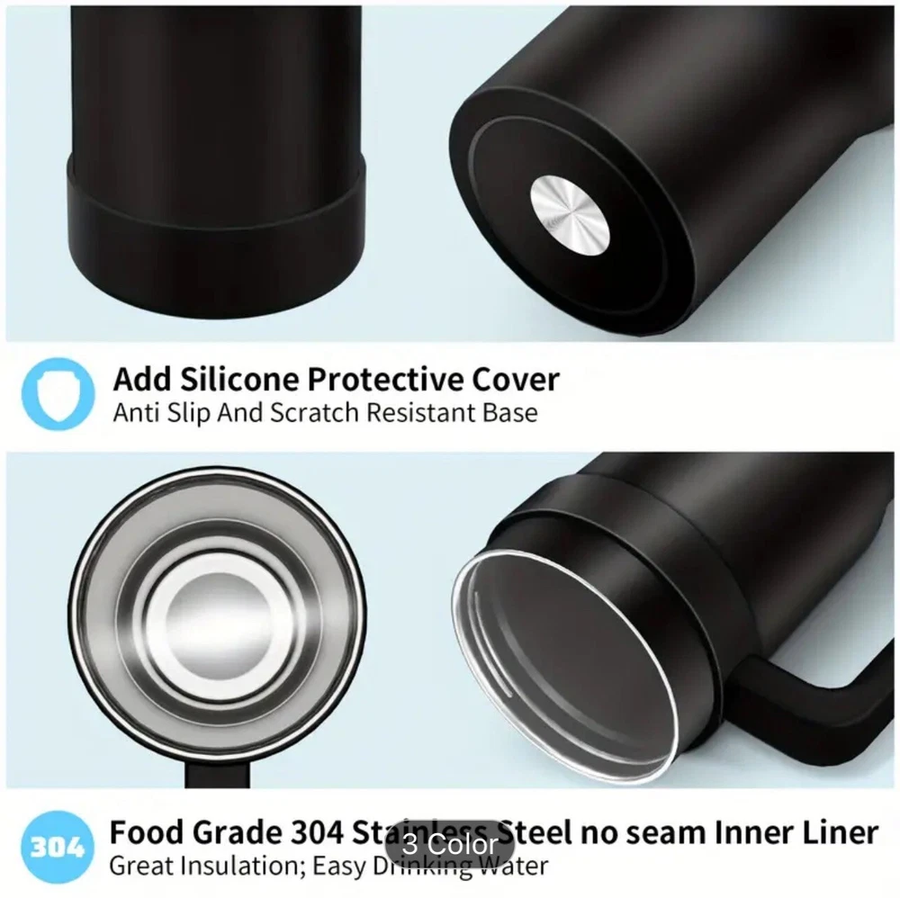 1pcs, 40 Oz Tumbler With Handle And Straw, Leakproof Vacuum Insulated Stainless Steel Cup With Screwed Lid & Straw Gym Water Jug Travel Mug For Hot/ Cold, Sweat Proof