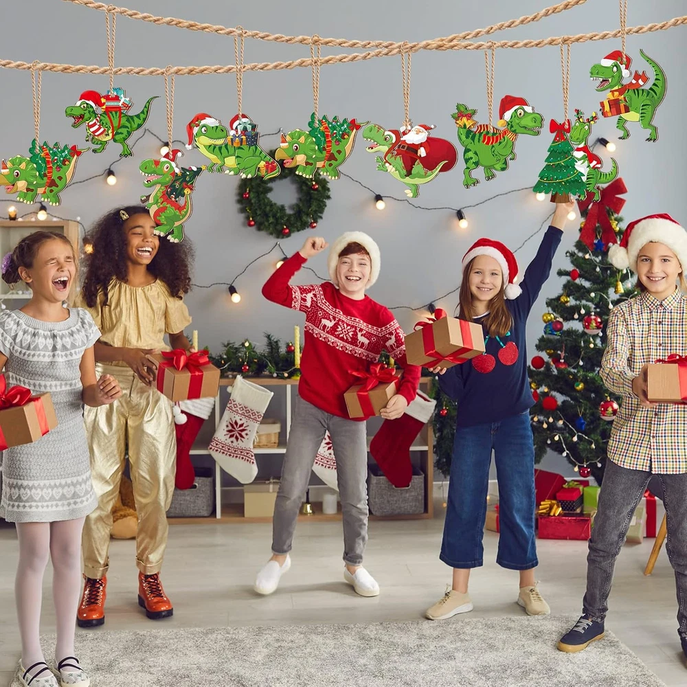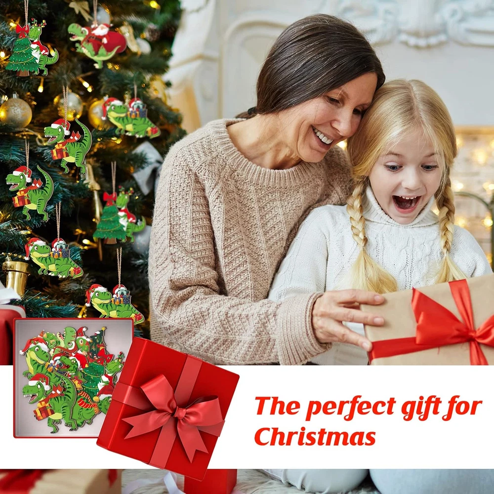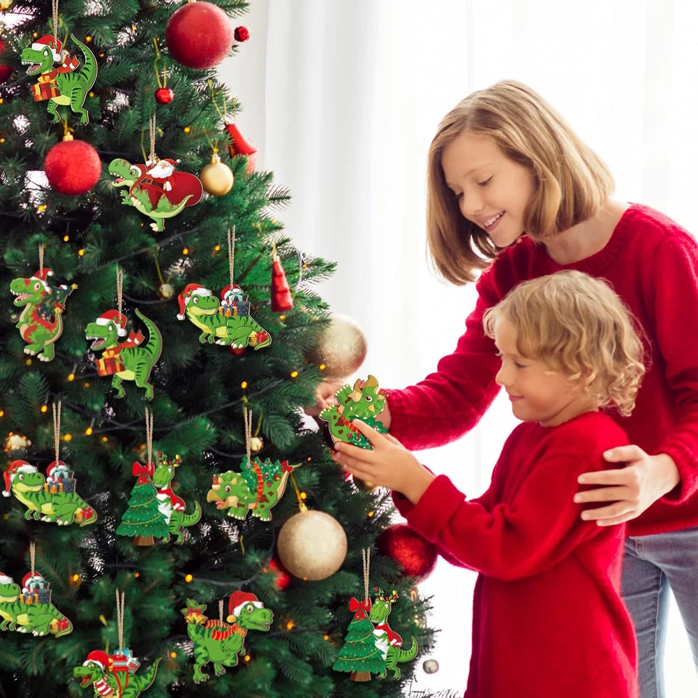 40 Pcs Christmas Dinosaur Ornaments Christmas Tree Topper Ornaments Wood Decorat