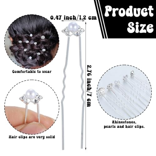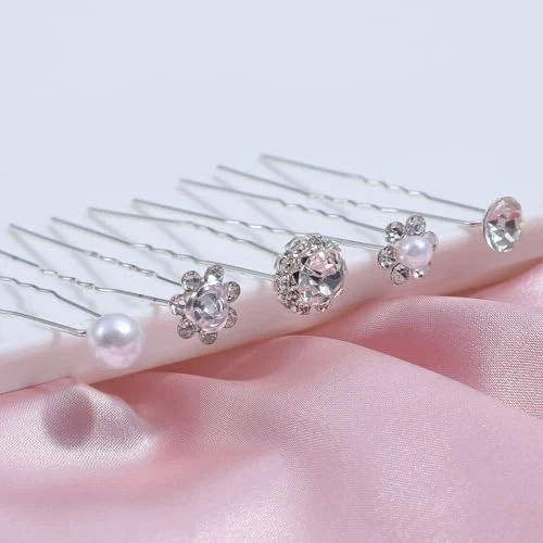 40 Silver Rhinestone Pearl Hair Pins for Wedding Bridal Decoration