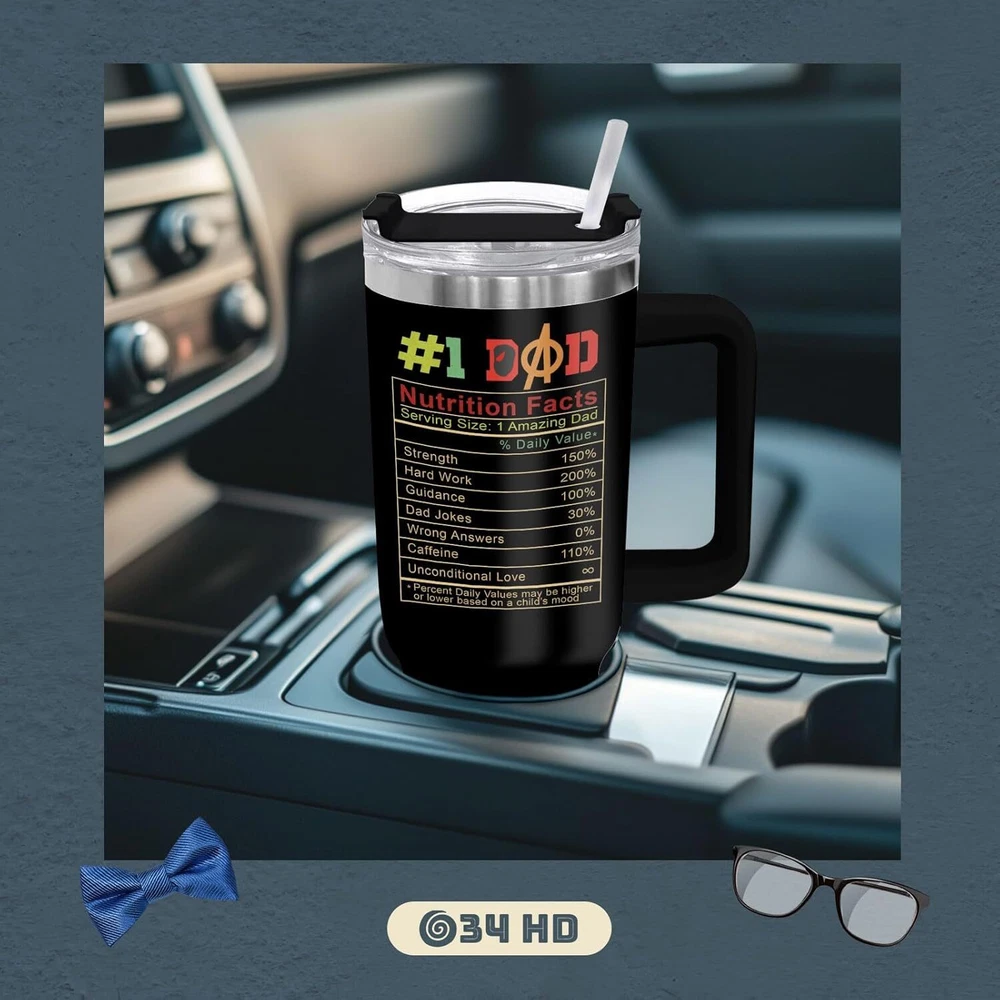 INSULATED COFFEE TUMBLER - Elevate your loved one's special days with this coffee tumbler featuring a design that’s both funny and meaningful. A unique themed coffee mug is a heartfelt way to show your love and appreciation for them. It’s a practical and thoughtful gift, perfect as a dad mug, dad drinking cup, dad travel mug, funny dad tumbler with handle, or dad tumbler cup. GIFT FOR MEN - Make his birthday even more special by showing him you care with our men travel cup. It’s the perfect choice for dad birthday gifts from daughter or son, unique gifts for men, cool gifts for male friend, Father’s Day gifts, and thoughtful presents for him who seem to have it all. TUMBLER WITH LID - Features a BPA-free flip lid and a leak-proof design, ensuring your hot or cold drinks stay secure. Our various designed tumblers are thoughtful boyfriend gifts, father daughter gifts, gifts for dad who wants nothing, present for grandpa, gifts for uncle, new dad gifts for men. HIGH-QUALITY MATERIAL - Carefully designed using 18/8 food-grade stainless steel, ensuring durability and longevity, these men tumblers are unbreakable, sweat-proof, and rust-resistant, making them perfect for everyday use. EXCELLENT TEMPERATURE RETENTION - With double-wall insulation, our tumblers keep hot and cold drinks at their desired temperatures, ensuring your beverage stays just right, no matter how much use it gets.