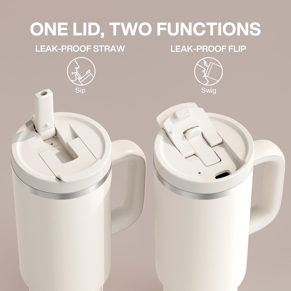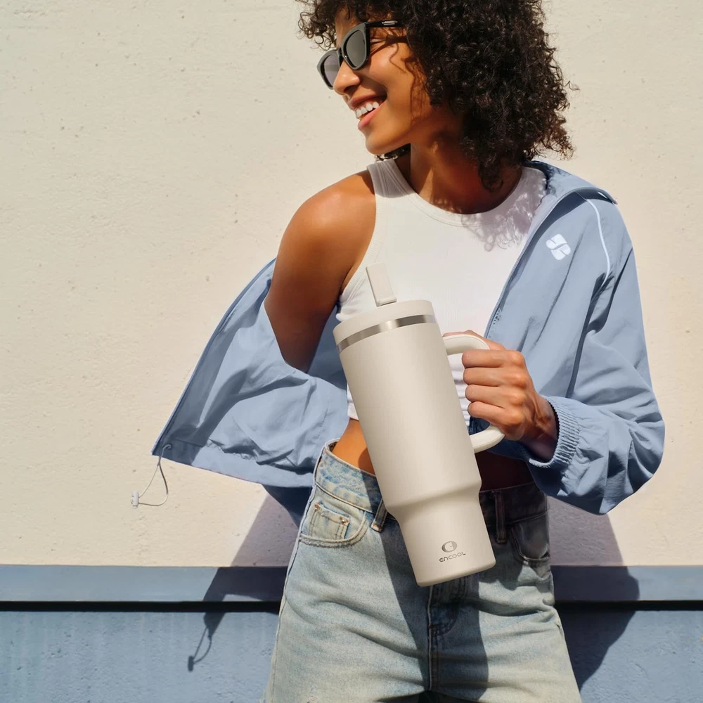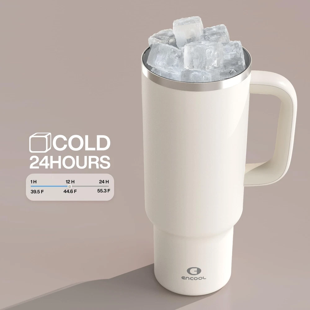 40 oz Tumbler with Handle and Straw: Stainless Steel Insulated Tumbler Keeps Cold for 24 Hours, Leakproof Travel Cup Fits in Cup Holder and BPA-Free, Cream Moon Product Details Size: 40 Ounces Color: Cream Moon Brand: ENCOOL MPN: EC-THD EAN: 6978104550544 UPC: Does not apply Brand: ENCOOL Color: Cream Moon Special Feature: Manual Style: Casual Theme: Sports Brand: ENCOOL Color: Cream Moon Special Feature: Manual Style: Casual Theme: Sports Recommended Uses For Product: Home, Travel Included Components: Lid Shape: Tumblers Product Care Instructions: Hand Wash Only Material Feature: Insulated, BPA-free Reusability: Reusable Unit Count: 1.0 Count Item Weight: 0.77 Kilograms Product Dimensions: 5.51"W x 10.63"H Number of Items: 1 Manufacturer: ENCOOL Size: 40 Ounces Item Weight: 1.7 pounds Item model number: EC-THD Date First Available: February 13, 2025 Leakproof Convenience: The secure, flip-top lid ensures a spill-free experience. Flip it open for easy sipping on the go, and snap it shut to keep your drink safely containedperfect for your active lifestyle. All-Day Temperature Control: Equipped with double-wall vacuum insulation, this tumbler keeps your beverages ice cold for up to 24 hours. Whether youre on a road trip, at the office, or hitting the trails, enjoy your drink at the perfect temperature. Sleek Style, Everyday Comfort: Designed with a modern look and available in multiple vibrant colors, this tumbler complements your style. Its ergonomic shape and soft-grip handle make it as comfortable to carry as it is stylish to use. Sustainable & Durable: Crafted from BPA-free, high-quality materials, this eco-friendly tumbler is built to last. Easy to clean and reusable, its your go-to solution for reducing waste while staying hydrated. Travel-Friendly Design: With its anti-slip base and narrow shape, this tumbler fits effortlessly into most car cup holders. Lightweight and portable, its the ideal companion for commutes, workouts, and outdoor adventures.