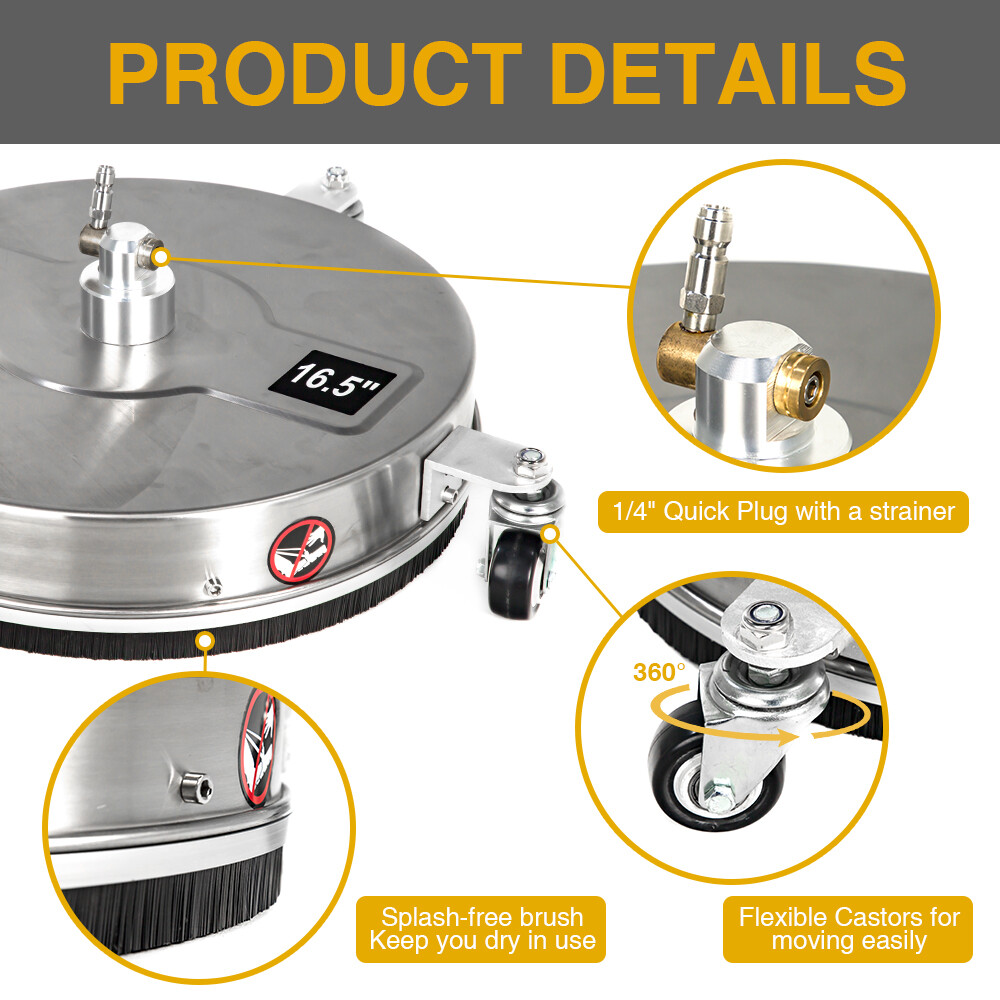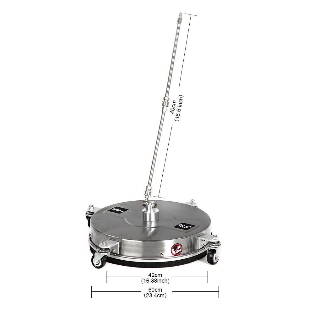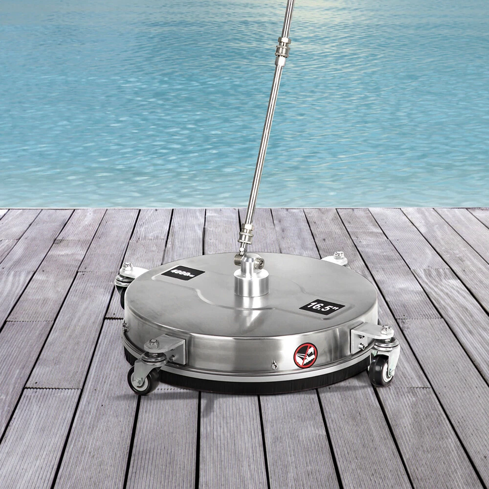 Experience unparalleled cleaning power and durability with our 4000 PSI 15" Surface Cleaning High-Pressure Washer, featuring a robust stainless steel chassis. Designed for heavy-duty applications, this high-pressure washer is built to tackle the toughest dirt and grime on driveways, patios, decks, and more. The stainless steel construction ensures exceptional resistance to corrosion and wear, providing long-lasting performance even in demanding environments. Equipped with advanced features for efficient surface cleaning, this unit offers a powerful solution for both professional and DIY users seeking reliable and effective cleaning results. 1. Unmatched Pressure Output Powerful Cleaning Performance: Delivering an impressive 4000 PSI of pressure, this high-pressure washer effortlessly removes stubborn dirt, grease, and grime from various surfaces. The high-pressure water jet ensures thorough cleaning in less time, making it ideal for heavy-duty cleaning tasks. 2. Durable Stainless Steel Chassis Corrosion Resistance and Longevity: Constructed with a stainless steel chassis, this unit offers superior resistance to rust and corrosion, ensuring long-term durability. The robust design withstands harsh conditions and frequent use, making it suitable for professional-grade applications. 3. 15" Surface Cleaning Nozzle Efficient Large-Area Coverage: Featuring a 15-inch wide surface cleaning nozzle, this high-pressure washer covers large areas quickly and efficiently. Ideal for cleaning driveways, patios, decks, and other expansive surfaces, it reduces cleaning time while maintaining high standards of cleanliness. 4. Advanced Safety Features User Protection and Peace of Mind: Equipped with safety features such as automatic shut-off, pressure regulation, and ergonomic handles, this unit ensures safe and comfortable operation. These features enhance user protection and provide peace of mind during use. 5. Convenient Mobility and Storage Easy Transport and Compact Design: Designed with mobility in mind, this high-pressure washer includes durable wheels for easy transport and compact storage. Its portable design makes it convenient to move between different cleaning locations.