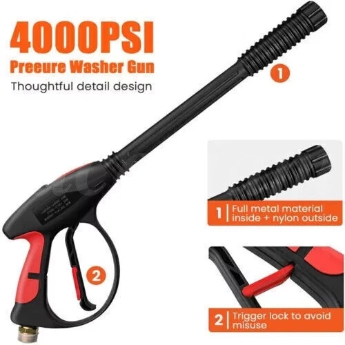 4000PSI High Pressure Car Power Washer Gun Spray Wand Lance Nozzle and Hose Kit eBay Top Rated Plus 100% Quality Assurance FREE SHIPPING With this High Pressure Car Washer, you can clean furniture, cars, gardens, stairs and pool dirt in minutes. Made of high-quality materials, the pressure washer can help you wash off those hard to clean surfaces and dirt. It works with pressure washers of up to 4000 PSI, coming with 5 color-coded spray tips with 0°, 15°, 25°, 40° and 65° spray patterns for a variety of uses. It can be used not only for cleaning cars, bikes, motorcycles, etc., but also for cleaning balconies, windows, decks, exterior walls, floors, fences, gardens, etc.With this High Pressure Car Washer, you can clean furniture, cars, gardens, stairs and pool dirt in minutes. Made of high-quality materials, the pressure washer can help you wash off those hard to clean surfaces and dirt. It works with pressure washers of up to 4000 PSI, coming with 5 color-coded spray tips with 0°, 15°, 25°, 40° and 65° spray patterns for a variety of uses. It can be used not only for cleaning cars, bikes, motorcycles, etc., but also for cleaning balconies, windows, decks, exterior walls, floors, fences, gardens, etc. Feature: 【 HIGH PERFORMANCE 】This easy handle pressure washer gun works with pressure washers of up to 4,000 PSI, great for washing cars, motorcycles, watering plants and trees, cleaning bathroom, kitchen, balcony, corridor, carpet, etc. 【 FLEX CONTROL & NO LEAK 】The pressure washer gun is equipped with a comfortable handle to reduce fatigue during use and will not feel tired even if it is used for a long time. Metal joints are not easy to loosen and leak, extending the working life. 【 DIFFERENT WATER SPRAY NOZZELS 】Different spray patterns can be selected. It comes with 5 color-coded spray nozzels with 0°, 15°, 25°, 40° and 65° spray patterns for a variety of uses. You can choose according to your needs.-0° Nozzle: Used to clean and flush high or hard-to-reach areas and clean gaps-15° Nozzle: Suitable for concrete, brick and hard surfaces with stubborn stains-25° Nozzle: Used for painting surfaces, wood, fences, watering and lawn mowers-40° Nozzle: For cleaning windows and glass-65° Nozzle: For detergent spraying 【 ERGONOMIC NON-SLIP GRIP 】Ergonomic non-slip grip that fits your hands makes pressure washing more comfortable. Safety locking trigger can prevent unwanted trigger. 【 EASY TO USE 】It is lightweight and portable. Suitable to be used not only for cleaning cars, bikes, motorcycles, etc., but also for cleaning balconies, windows, decks, exterior walls, floors, fences, gardens, etc., or the places that are difficult to clean manually. Specification: Type: Water Pressure Washer Color: Black Material: Metal + Plastic + Copper Extension tube Length: 47cm / 18.5"Gun Type: Ergonomic Connection: 1/2" BSP Gun to Lance Connection: M22 Gun to Hose Connection: M22-14 Hose Length: 30ft Nozzle Type: 0°, 15°, 25°, 40°, 65° Max. Pressure: 4000PSi Max. Temperature: 60℃/140℉ Power Source: Corded Electric Package Contents: 1 x High Pressure Washer Gun 1 x Extension Wand 5 x Spray Nozzles 1 x 30FT Hose Note: 1. Please allow minor differs due to manual measurement. 2. The picture may be a little different from that of real item due to the different display and different light. 3. Due to different producing batches, product details might be a little different. If you mind the difference, please buy with caution. Thank you for your understanding. 4. If you have any questions about the product, please contact us. About Bestoffers Bestoffers22 was born in Apr 20, 2022. We have been deeply involved in the auto and motorcycle parts industry for decades, and since 2020 we have been creating our e-commerce company, as well as expanding our business into other industries. Bestoffers22 is our fifth eBay store in US! We trade in European countries including the USA, UK and Germany, and have established our private warehouses in each country of sale. In order to provide consumers with 100% product quality assurance and after-sales service, we guarantee that all products have 30 days free return and exchange as well as 24-hour customer service online service. Our product and Sevvice 1. 100% Quality Assurance All of our products are made in China, we can provide you with 100% quality assurance, and we promise to refund without any reason for quality problems. 2. Product Certification All of our products are patented, processed by domestic factories, tested for product quality and drop resistance, and certified by the US industry. You can buy all our products with confidence. 3. Fast shipping We are different from other Chinese sellers, we have builted local warehouses in the US, EU and other countries, which can provide consumers with faster shipping. FAQ (Frequently Asked Questions) Q. What courier are used for international transportation? A. We use FedEx/USPS to deliver packages to ebay distribution centers, and ebay arranges delivery for the last leg. Q. If I receive the goods and feel unsatisfied, can I return them for a refund? A. If you are not satisfied with an item you may return it and have refund. But must be ensured that the product is in perfect condition for secondary sale. Q. What should I do if the product is damaged in transit? A. Please open the package at the first time when you receive it to check, if the product is broken, please take pictures of the package and the product and contact us. For products that are no longer usable, we can send you a replacement product or a full refund. Q. Can I change shipping address after purchase? A. Shipping address cannot be changed after purchase, so if your shipping address is wrong, we recommend that you cancel the order and place a new one. Shipments Handling We will ship all orders within 1 business days of payment. Delivery Shipping is included for free with your purchase. We use FedEx / USPS for all of our