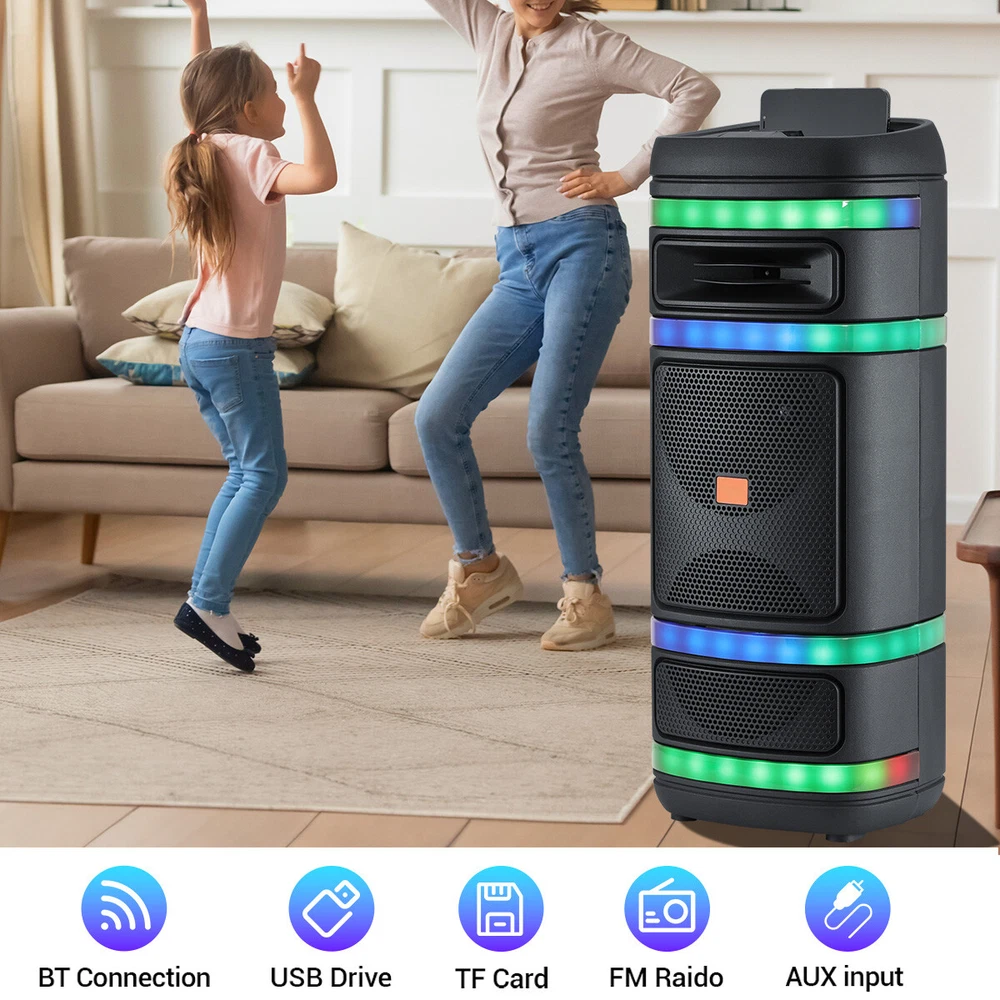 4000W Dual 8'' Portable BT Stereo Speaker with Mic, PA System with FM/TWS/EQ/LED Feature: The speakers are specially equipped with TWS (True Wireless Stereo) function, which can easily realize the left and right channel wireless crosstalk and bring immersive stereo sound effect. At the same time, the addition of LED indicators not only adds a sense of technology to the product, but also shows the working status of the speakers in real time, allowing you to keep track of the dynamics of the speakers. In order to meet the needs of use in different scenarios, the speaker is designed with two microphone jacks to support external microphone, whether it is Karaoke, speech or meeting, it can be easily dealt with. In addition, the built-in EQ (Equalizer) function allows you to adjust the sound effect according to your preference, whether it is low rock, exciting jazz or soft classical music, you can find the most suitable sound quality performance. In terms of audio input, the speakers support memory card, Bluetooth, FM radio and AUX port, etc., with strong compatibility and convenient connection. Built-in 18650 lithium-ion battery with a capacity of up to 3000mAh ensures a long time of use. After one full charge, it can continue to play for 5 hours to meet your long time entertainment needs. The speaker supports AC 100-240V 50/60Hz wide voltage input, so you can easily charge it no matter where you are. The output power reaches 20W, and the peak power is up to 4000W, bringing you a stunning sound experience. Two 8-inch speaker units provide a wide sound range and deep bass, making music more full and powerful. In terms of exterior design, the stereo adopts a black plastic cabinet, which is simple and stylish. The sturdy and durable material ensures the stability and durability of the product in different environments. Specification: Audio Input:Memory Card/Bluetooth/FM/AUX Built-in Battry: 18650 li-ion battery Battery capacity:3000mAh Charging time: 5-8 hours Play time: 5 hours (fully charged) Input Voltage: AC 100-240V 50/60Hz Output Power: 20W Peak Watt: 4000w Speacker Size:8''*2 Color:Black Material: Plastic cabinet TWS EQ MIC 1 / MIC 2 interface Package: 1 x Party Speaker 1 x Charging Cable 1 x Wired Microphone 1 x User Manual Delivery details Payment Terms of sales Feedback Contact us Delivery details 1. BUSINESS DAY MONDAY- FRIDAY FAST SHIPPING FROM USA. 2. All orders and payments received before 4PM EST (1PM PST) will be shipped the same business day. 3. No shipping on Saturday,Sunday or USA Public Holidays 4. No responsibility for any custom duty Payment We accept payment by PayPal only. Terms of sales 1. We offer a 60 day money back guarantee or exchange. 2. Buyer pays return shipping and we pay replacement shipping. 3. If you want to initiate a return,please contact us to get a returning address before sending the item back. Feedback 1. We strive to provide the best products and services. 2. Your positive feedback 5 stars DSR help us do better. 3. If anything about your transaction did not meet expectations, please CONTACT US and give us the opportunity to make things right. We are always here to help. Contact us Please do not hesitate to CONTACT US . You can message 24/7 on eBay for all questions and inquiries. We will get back to you within one business days at the latest from Monday- Friday.