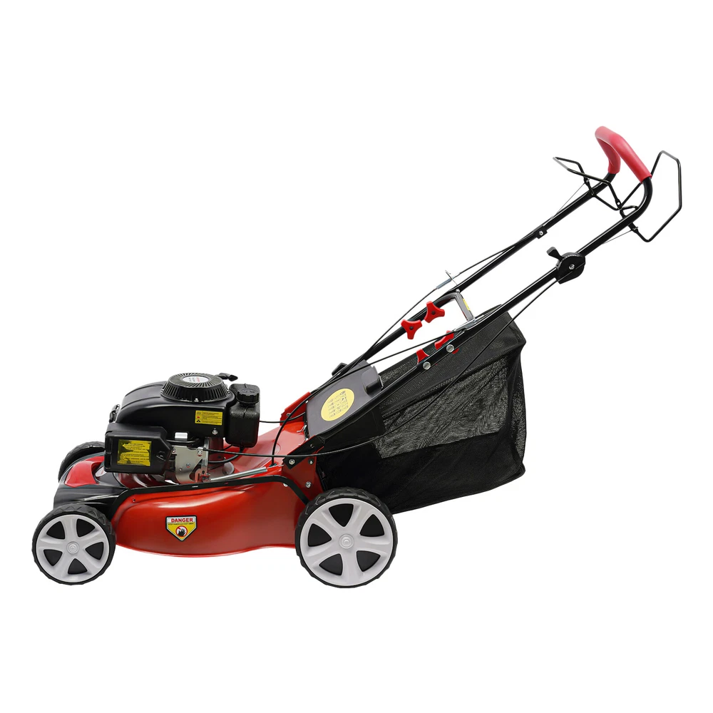Description Flowers can be set off with green leaves, but cannot be covered by weeds. Messy weeds will make our lawn and garden disorder. Our gas l awn mower is a powerful helper. Made of strong steel, nylon, and manganese steel, it is durable and provides quality assurance for your long-term use. Strong power and high work efficiency can make weeding easier and save you energy. Large-capacity collection bags and fuel tanks allow you to work more smoothly. With it, you can have a cleaner lawn. Key Features Exquisite Material: The main body of the weeder is made of steel, nylon, and manganese steel, which is durable, wear-resistant, and not easy to rust. Therefore, you can use it for a long time without frequent replacement, which can save your costs to a certain extent. Exquisite Workmanship: The weeder adopts plastic spraying technology to make the product more three-dimensional in shape, smoother in surface, and brighter in color. Adjustable Height: The weeding machine has an 8-position height adjustment function. You can change the mowing height according to the actual situation of the lawn, so as to get a better weeding effect. Strong Power: The weeding machine is equipped with a 140cc four-stroke single-cylinder gasoline e ngine, which can provide you with sufficient power to make your weeding work easier. High Working Efficiency: The power of the weeder is 5HP, the rotational speed can reach 2800rpm, and the cutting width can reach 51cm/20inch. It can remove weeds in a short time and provide you with a complete and clean lawn, so you don't need to work longer. Large Capacity: The capacity of the grass collecting bag and fuel tank is 60L/15.85 gallons and 1.6L/0.42 gallons respectively, so you don't need to remove weeds or refuel frequently. Easy to Store and Clean: The product has a smooth surface, and the handle and the bag of the weeder can be disassembled and folded, so you can store and clean it very conveniently after use, to save space and keep your studio in order. Simple Operation: The product is equipped with a hand starter. If there is enough gas, you can start the machine to weed by pulling the starter, saving you time. At the same time, the product is powered by gasoline and will not be limited by electric wires. User-friendly Design: You can directly stand and push the machine to mow without bending, reducing the burden on the waist due to long time work. Simple Installation: The package of this lawn mower provides all the accessories required for installation and a detailed manual. You only need to connect each part with screws to save you time. Ideal Gift: With its beautiful appearance and good performance, this lawn mower can be used as a gift for friends and family to ease their trouble in clearing weeds. Details Handle: The foamed cotton is set at the handle, which not only plays the role of anti-skid bu t also can better protect your hands, and reduce soreness and mechanical shock . Grooves: There are many grooves on the wheel surface to prevent slipping, so you can easily push the wheel on the grass. U-shaped Tube: The tube is fixed with screws, making the tube not easy to fall off and having a long service life. Protective Cover: A protective cover is set on the top of the product, which can protect the starter well. The cooling hole on it can timely help reduce the temperature of the engine and extend its service life. Application This product is applicable to almost all lawn planting for weeding. Specification Material: Steel, Nylon, Manganese Steel Color: Black, Red Power Source: Gas Type of Engine: 140cc Four-stroke Single Cylinder Gasoline E ngine Cutting Width: 51cm/20 inch Cutting Height Adjustment: 8 Gear Collection Bag Capacity: 60L/15.85gallon Fuel Tank Capacity: 1.6L/0.42gallon( Above 90#) Power: 5HP Speed: 2800rpm Net Weight: 35kg/77.16lbs Gross Weight: 36.5kg/80.47lbs Product Width: 52cm/20.47inch Size of Wheel: 8" Front & 10" Rear Product Length: 1.55m/5.08ft Product Height: 1.1m/3.6ft Size: 155*52*110cm/61.02*20.47*43.31inch Package Size: 86*56*47cm/33.86*22.05*18.5inch Package Included 1 * Gas Lawn Mower 2 * U-shaped Tubes 1* Grass Collecting Bag 1* English Manual All Accessories for Installation Notes Please read the operating manual completely before use. And pay particular attention to the safety instructions included. Gasoline is extremely flammable, so please allow the engine to cool for 2 minutes before refueling. Please do not sta rt or run the engine in an enclosed area, even if doors or windows are open. Please allow the slight color difference caused by the shooting light and 1-3 cm error due to manual measurement, and make sure you do not mind before ordering. On Feb 7, 2025 at 18:34:08 PST, seller added the following information: