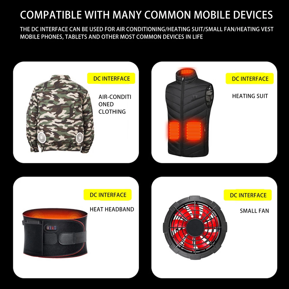 Product capacity: 4000mAh Product color: Black Product size: 82*49*15mm DC output :5V-2A Type-C Input :5V-1A USB output: 5V-1A Scope of application: heating clothing products Please Note: Communication is the best way to solve the problem.Your satisfaction is our top priority. We appreciate your positive feedback! We have always been committed to providing the best service and reliable products to every customer. However, accidents may occur at times, and we understand your concerns and setbacks. Please contact us to resolve the issue before leaving negative feedback. We will reply to you as soon as possible. If there is no response within 24 hours, please check the email in your email. Our goal is to provide first-class customer service, so we usually do our best to solve any problems! (Note: Weekend Information Will Be Replied on the Next Working Day)