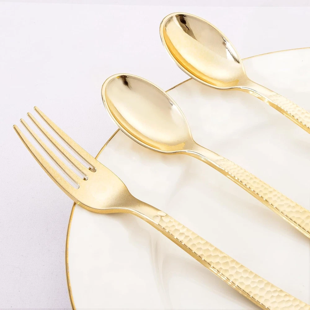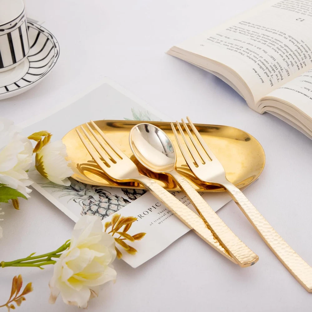 Store New Arrivals Add to Favorite View Feedback Contact 400PCS Gold Plastic Spoons and Forks Disposable - Gold Plastic Silverware Set Disposable Gold Spoons and Forks Set - 200 Gold Plastic Forks,200 Gold Plastic Spoons for Thanksgiving Party,Birthday Description Item model number 400 Item Weight 5.31 pounds Style Modern Number of Pieces 400 Color Gold Special Feature Disposable Material Plastic Country of Origin China Is Dishwasher Safe No Is Stain Resistant Yes Recommended Uses For Product party Included Components Forks、Spoons Finish Type Hammered Package Dimensions 10.35 x 8.03 x 7.56 inches Product Care Instructions Hand Wash Only PREMIUM QUALITY: These gold plastic spoons and forks are made of heavy-duty plastic to provide a pleasant dining experience for you and your guests. The gold spoons and forks set is are smooth surface, not easy to crack. ELEGANT DESIGN: 400 pieces of gold plastic forks and spoons are shiny, simple yet stylish, brings a touch of grace to your posh party set up! Gold hammered forks and spoons have a unique design and classic look that is much more attractive. SPOONS AND FORKS SET: Our disposable gold plastic silverware set contains 200 gold plastic forks and 200 gold plastic spoons, will help you serve up 200 guests at once. Size of forks: 7.4 inch, spoons: 6.9 inch. SUITABLE FOR ANY OCCASION: You could use our plastic spoons and forks disposable at weddings, birthdays, anniversaries, family gatherings, Thanksgiving, Christmas and various parties. It can be easily stored in a cool and dry place. CONVENIENT: KIRE plastic silverware are easy to clean up when thrown away after your event, free yourself to enjoy the impressed party. Please hand wash the plastic cutlery for next time use. Product Description About the product - Includes 200 gold plastic forks, 200 gold plastic spoons Made of high quality plastic, sturdy and durable Elegant hammered design, very textured to use It is not recommended to put this product in the dishwasher or microwave to avoid adverse consequences. CONVENIENT TO USE You don't have to waste any more time cleaning these gold plastic forks and spoons, just throw them directly when you finish your meal. ELEGANT DESIGN The gold spoons and forks set are perfect for wedding, birthday, holiday. You can also use them for Halloween, Thanksgiving, Christmas, New Years. HIGH QUALITY KIRE plastic forks and spoons are made of high quality materials, sturdy and durable, Don't worry about them breaking when daily using. KIRE Thank you for choosing KIRE. Wish you enjoy with our products. ABOUT US We offer the best prices around on high quality products. Our E-store includes media such as books, movies, music and games while offering electronics, toys, sporting apparel, clothing, tools, general home, garden items and more. SHIPPING We are always working hard to ensure your package arrives as soon as possible. Please understand that some factors like weather, high postal traffic, and the performance of shipping companies are outside of our control. We offer free shipping to the lower 48 states and ship within 2 business days of payment, usually sooner. We do not accept P.O. Boxes. Please provide a physical address. For shipping outside of the continental USA, we only use eBay's Global Shipping Program.The item is shipped to KY and then sent to the rest of the world. International customers are responsible for all duties and taxes. Continue to check out in order to calculate costs for shipping the item to your country. Messages regarding eBay's Global Shipping Program MUST be directed at eBay EXCLUSIVELY. RETURNS We offer a 30-Day Return Policy on items which you are not completely satisfied with. You have the option for a full-refund or an exchange of the item. No returns are available on items shipped outside of the USA. PAYMENT We accept PayPal. CONTACT US This page content is yet to come Please ad us to your favorite seller and visit again later Thank You CUSTOMER SATISFACTION We try our very best to make sure every customer is completely satisfied. If there's a problem, message us! We're happy to help. WE ACCEPT Copyright © 2021 AutoDS. | All Rights Reserved