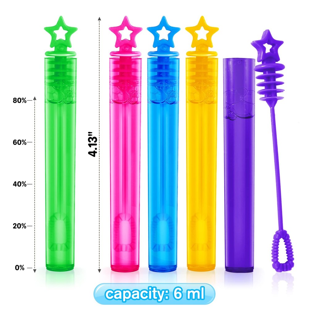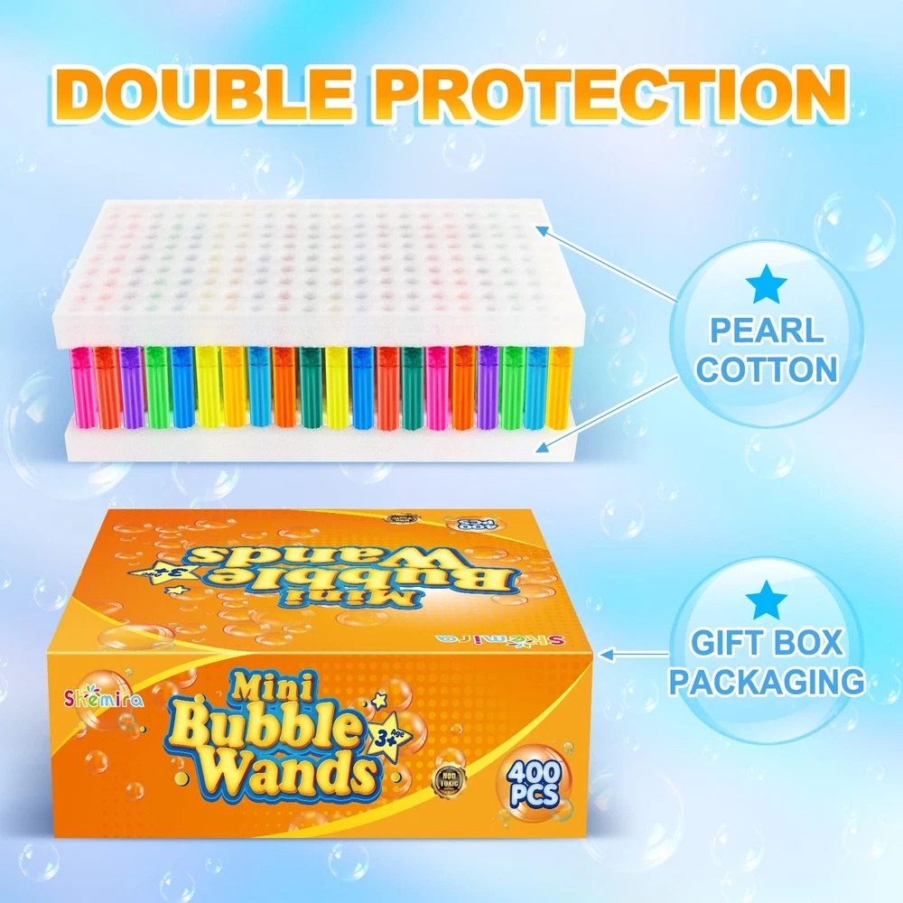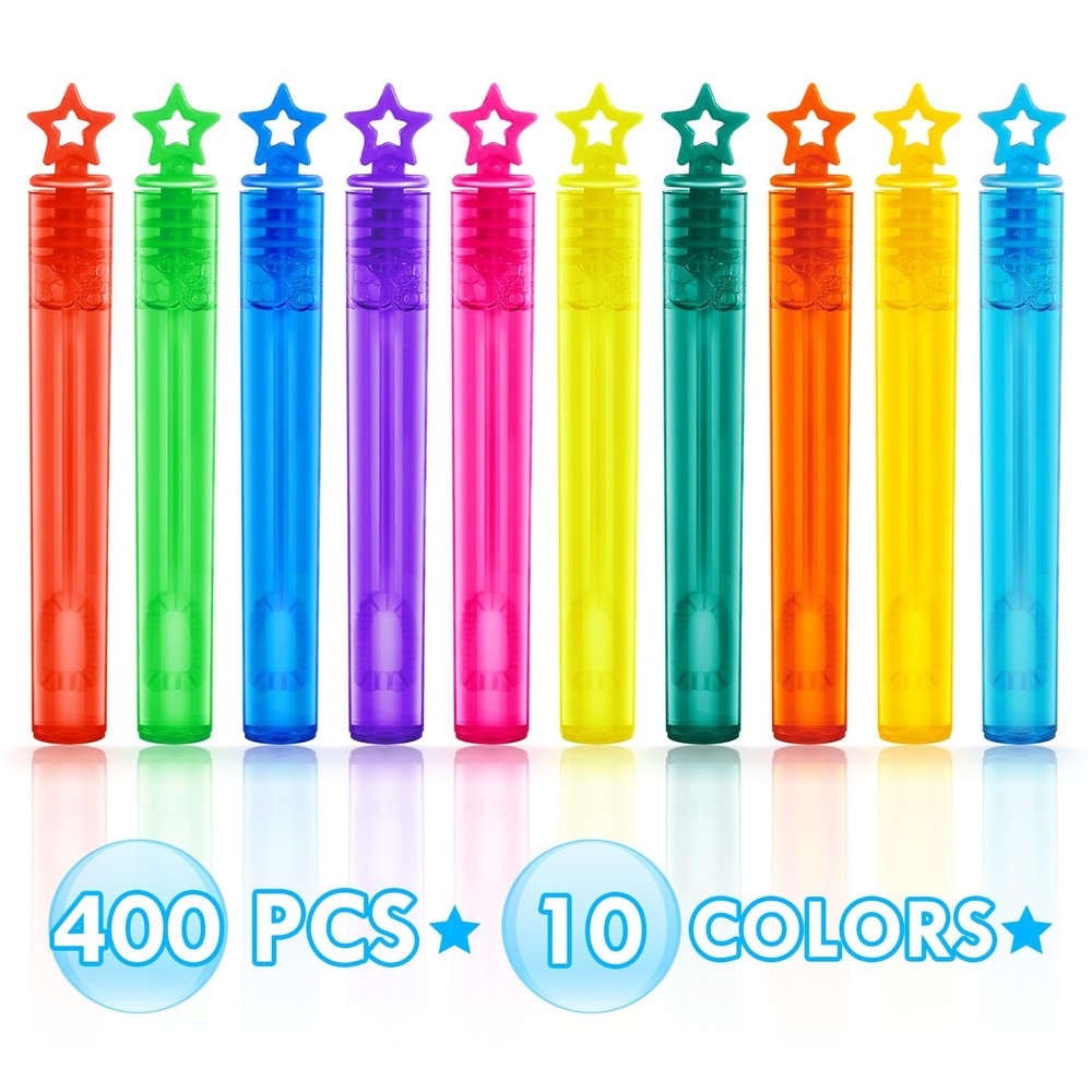 Bubble Wand, 400 Pieces Mini Bubble Wands Bulk in 10 Colors, Bubbles Party Favors Bulk for Kids, Summer Toys for Girls & Boys, Carnival Prizes, Themed Birthday, Wedding, Indoor Outdoor Activity Super Value Package - The package contains 400 mini neon bubble wands in 10 eye-catching bright vibrant colors, which have enough quantity to meet different needs of parties. A sturdy colorful box with double pearl cotton packaging will make sure every product is delivered in good condition and won't have any leak problems. Decent Size for Everyone- It's hard to imagine that a 4-inch bubble wands can provide so much fun. Not just perfect for little hands, but fits everyone. Each wand contains a 0.2 oz (6ml) bubble solution, not too much bubble liquid to clean up when kids drop the container. Not as messy as the traditional bubbles. And the bubble tube is made of sturdy and durable plastic, it can be reused by filled with bubble solution. Easy to use, refillable, very useful, and practical. Perfect For Holiday Supplies - These mini bubble wands are easy to fit into a variety of gift bags, perfect for goodie bags, easter egg fillers, gift boxes stuffers and school classroom game prizes. It is the ideal boy & girl gifts for Valentine's Day, Easter basket, Christmas, Halloween goody bag, treat or trick gifts, Thanksgiving, New Year, 4th of July, Thanksgiving. Kids Party Favor- Everyone loves bubbles. These presentable bubble wands will make you the most popular host, it provides fun for kids at various themed parties. Bulk mini bubble wands are perfect for stocking stuffers, party favors, baby shower parties, birthday party games, carnival party, family reunion, graduation party, wedding, gathering, travel camping or summer outdoor activities, handouts or rewards, school classroom prizes for kids. Safe Bubble Wands for 3+ Year Old Kids - The bubble solution is made from a non-toxic and odorless soap solution, this bubble solution is very safe for children's skin and face, you can give it to kids with confidence(DO NOT DRINK). If you have any questions, please feel free to contact us. We will reply to you within 24 hours.