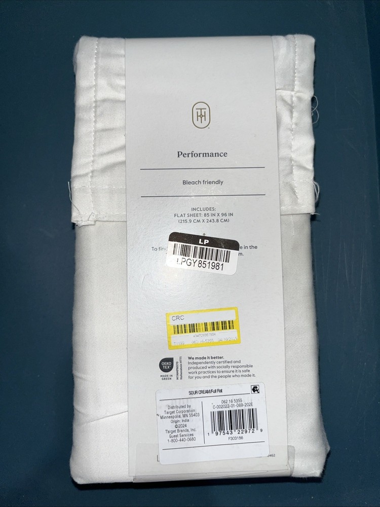 The product is a set of full-sized flat sheets in a sour cream color from the brand Threshold. Made from 100% cotton with a thread count of 400, these flat sheets are designed for adult use in a bedroom setting. The neutral white color adds a classic and clean look to any bedroom decor. The high thread count ensures a comfortable and luxurious feel to the sheets, providing a cozy and relaxing sleeping experience. WH4
