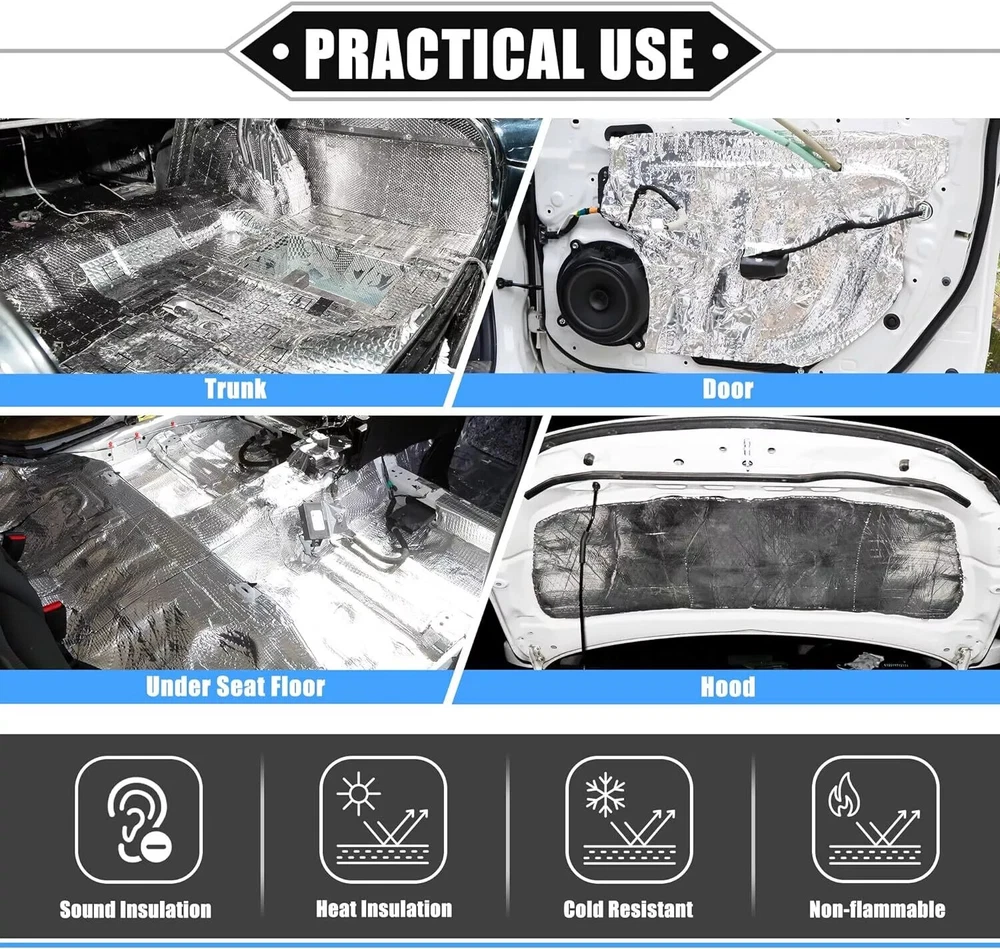 Description: Material: Aluminum & Foam & Adhesive Backing Color: Silver&Black Recommended Install Temperature: -10°C ~ +60°C Resistance Temperature Range: -40°C ~ +300°C Waterproof & Fire Resistant: Yes Thickness:5mm=197mil=0.197” Dimension: 1M×1M (40"×40") Specifications: Yongl73 Best choice of motor parts 40"×40" Heat Insulation Shield Hood Liner Bonnet Sound Deadener Engine Cover Description: Material: Aluminum & Foam & Adhesive Backing Color: Silver&Black Recommended Install Temperature: -10°C ~ +60°C Resistance Temperature Range: -40°C ~ +300°C Waterproof & Fire Resistant: Yes Thickness:5mm=197mil=0.197” Dimension: 1M×1M (40"×40") Specifications: Features: car heat / sound insulation Function: Car sound insulation Temperature Rating: 200 Degrees nominal Outer Material: 99.4% pure polished aluminum reinforced facing Reinforced / Crush Resistant: Yes Mildew & Mold Resistant: Yes Water resistant: Yes Non-toxic: Yes Features: 【Reduce road noise】 If you often drive on uneven roads or on noisy highways, sound insulation can bring you more comfort. It will reduce the noise of roads and other drivers. It will make your driving smoother and have the added benefit of better media listening 【Enhance the music】 Use sound insulation to make your radio clearer. You will no longer have to turn it up because of traffic noise. Not only is it good for music, but audio books and telephones will sound better, too 【Improve privacy】 If you don't want other people on the road to hear what you're listening to, the sound insulation prevents the noise from escaping. Sound insulation will help you 【Warm in winter and cool in summer】 The car insulation will help reduce your interior temperature in the summer, and in winter, the heat insulation can keep you warm in the car, which is conducive to warmth reduce engine/tunnel/console 【Protect car paint】 In summer, the temperature is too high, the engine runs at high speed and accelerates for a long time, and generates heat, which can easily cause the aging and fading of the car paint; the heat insulation pad can protect it 【Increase the life of the car】 In summer, due to high temperature and long-term driving, it is easy to cause the cabin to heat up and cause a fire, which may seriously damage your car. Using heat insulation pads can extend the life of the car Package included: 1x Heat Sound Deadener Insulation Mat 1x Roller 4x Installation Tools Installation: Step 1 : Remove the door panels Step 2 : Install the screws back in original place, it will easy be found when you mount, avoiding holes be covered Step 3 : Make insulation materials and sheet metal firm fit, and play best adhesive, damping performance Step 4 : According to the effect you want choose Heat and Noise Insulation Cotton. Step 5 : You can also use on car roof floors, hood , firewall, chassis, trunk room, trunk lid and so on.. Do not cover the chassis wiring or air holes. Note: Due to the light and screen setting difference, the item's color may be slightly different from the pictures. Please allow slight dimension difference due to different manual measurement. To pack in a folded form. Item Specifics Brand Modigt Type Car Truck Noise Reduce Dampening Material Aluminum & Foam & Adhesive Backing Placement on Vehicle Cargo/Trunk/Bonnet/Dashboard/Under Seat/Doors Color Silver&Black Superseded Part Number Heat Sound Deadener Insulation Mat Universal Fitment Yes Manufacturer Part Number Car Heat / Sound Insulaiton Deadener OE/OEM Part Number Deadening Material Insulation Cars & Truck Fitment Type Direct Replacement Vintage Car Part Yes Manufacturer Warranty 2 Years Performance Part Yes Easy Installation All Curves and Corners Without The Need For Heat Application 1 Turbo,Front Fender,Rear Fender Application 2 Hood,Firewall,Doors,Floor,Roof Application 3 Trunk Lid,Trunk Room,Engines,Tailgate Application 4 Ceiling,underneath bonnets,Underfelt Application 5 Underlay,Boot,Panel,Chasis Application 6 Automotive,Motorhome,Camper,Restorer Application 7 Classic Car,Race Car,Stock Car,Old Vintage Car,Pickup,SUV,Caravan Application 8 Van,Truck,limousine,Camper,Boat,Motor Homes,School Bus,Low Rider Application 9 Muscle car/Hot rods/Corvettes/Imports/Tuners/Street rods/Rat rods Application 10 Cockpit Floor, Tailgate, Firewall U Type Wall Application 11 For Use in The Application Of Any Sound Deadening Application 12 Car& Home Interior Heat Sound Deadener Insulation Function 1 Protects Paint from Blistering Function 2 Reduce the road/ Engine/ Wind noise Function 3 Dustproof, Waterproof, Anti-moisture Features 1 Noise Reduction, Easy to Cut, Self-Adhesive Features 2 Easy Installation, Waterproofing, Fireproofing Features 3 Protects Paint from Blistering, Anti-moisture Thickness 5mm=197mil =0.197" Size 1M / 40" x 1M / 40" = 11.11sq.ft Surface Finish As picture shows Product status 100% brand new Item Width 1M = 40Inch Item Length 1M = 40Inch For More Detail Please View in Description Come With 1 1x Roller , 4x Installation Tools ( for free ) Come With 2 1x Heat Sound Deadener Insulation Mat Payment 1. It will be much appreciated that you finish your payment asap or it will make UPI (unpaid item case) on your account leading to be suspended or restricted by eBay when those UPI cases carry over to certain amount. 2. Any problems please contact us for more details. Shipping 1. All items will be shipped to buyer's ebay address. 2. All items will be shipped within 24-48 working hours upon receipt of payment, and multiple items will be combined shipping. 3. In most cases, delivery takes around 3-5 business days, it's highly depended on the efficiency of the shpping carrier. If your item doesn't arrive on time, please contact us immediately for further assistance. Please note there is no local pickup service available. Returns If you are not 100% satisfied with your purchase, you can return the product and get a full refund or exchange the product for another one. Please Note: Pleas