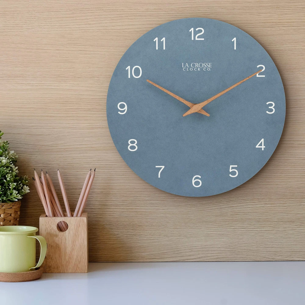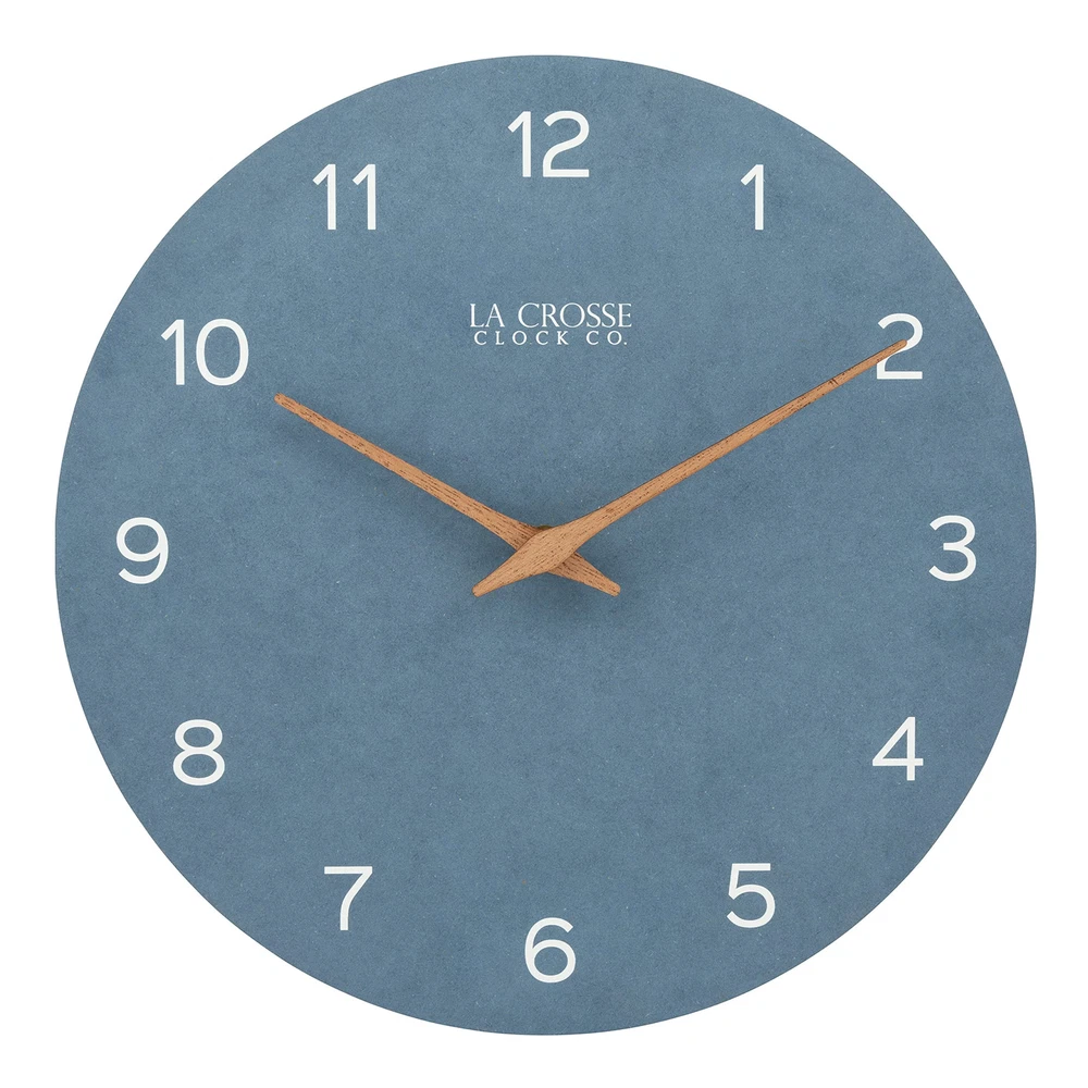Introduce serene sophistication to your space with the Technology 12" Tahoe Quartz Analog Wall Clock (404-3630A), a stunning timepiece that perfectly balances modern design with natural elements. The distinctive wall clock combines contemporary style with versatile appeal that enhances any room's décor. The dusty blue design features a unique paper dial that creates a soft, matte finish reminiscent of lakehouse charm. The blue-gray palette provides a calming presence while maintaining sophisticated appeal, while natural wooden hour and minute hands add organic warmth to the contemporary color scheme. The open-face construction eliminates glare and reflection for optimal visibility from any angle, while precise quartz movement offers a soft ticking sound that provides a gentle reminder of time's passage. This elegant timepiece combines the grandeur of a grandfather clock with modern simplicity, working beautifully in both traditional and contemporary settings. Perfect for homes, offices, or any space deserving of sophisticated style, the Tahoe blue clock operates on a single AA alkaline battery (not included) for convenient, cordless operation. Elevate your space with this sophisticated wall clock 12 inch featuring a serene dusty blue wall clock design. The Tahoe blue clock combines eco-friendly materials with modern style, showcasing a recycled paper dial with crisp white numerals and natural wooden hands that create a perfect balance of contemporary and rustic elements. Experience the perfect blend of style and function with this gray blue wall clock that brings lakehouse charm to any room. This modern wall clock features an open-face design that eliminates glare and reflection, ensuring clear visibility from any angle while maintaining its sophisticated blue faux leather analog wall clock appearance. Transform your space with this analog wall clock blue design that perfectly captures coastal elegance. The wall clock wood hands add natural warmth against the soft matte blue-gray face, creating a timepiece that serves as both a reliable chronometer and a stunning piece of wall art. Discover timeless style with this blue and gray wall clock featuring precise quartz movement with a gentle ticking sound. The wall clock dusty blue design creates a calming presence in any room, while the eco-conscious recycled paper dial demonstrates a commitment to sustainable materials. Perfect for any room requiring sophisticated style, this grandfather wall clock inspired piece combines traditional elements with contemporary design. The 12-inch diameter provides ideal visibility while the battery-operated mechanism (requires 1 AA alkaline battery, not included) ensures convenient, cordless operation.