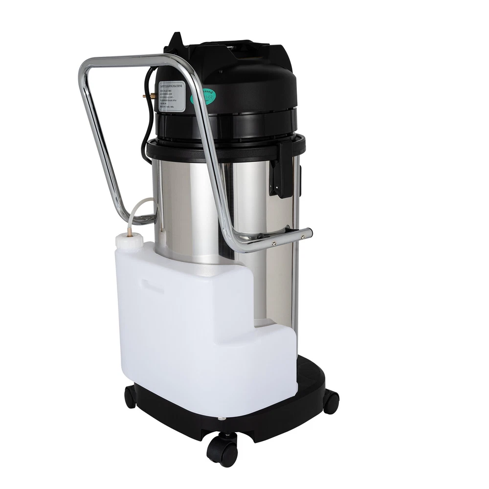 Details Model: LC-40SC Material: Stainless Steel, Plastic, EVA, Cotton Waterproof Level: IPX4 Cooling Mode: Circulating Air Cooling Capacity: 40L/11gal Power: 1034w Voltage: 110V Pump Power: 34w Pressure: 87PSI Air Flow: 53L/s Vacuum Suction: 230mbar Clean Water Tank Capacity: 10L/2.64gal Power Cord Length: 7m/22.97ft Suction Pipe Length: 2.63m/8.63ft Steel Tube Length: 1.2m/3.94ft Interface Diameter: 4cm/1.57inch Barrel Diameter: 32cm/13.18inch Large Sucker Length: 1.48m/4.86ft Cleaner Machine Size: 37*35*84cm/14.57*13.78*33.07inch Cleaner Machine Package Size: 46.5*43*95cm/18.31*16.93*37.4inch Suckers Package Size: 149*20*24cm/58.66*7.87*9.45inch Cleaner Machine Net Weight: 16.65kg/36.71lbs Suckers Net Weight: 8.6kg/18.96lbs 3in1 40L Commercial Carpet Cleaning Machine,Vacuum Cleaner Extractor Commercial Carpet Cleaning Machine 3in1 Pro Cleaner Extractor Vacuum Cleaner 40L Notes: 1. The added hot water should not exceed 50 degrees Celsius. This is not a steam version, and adding hot water will not produce steam. 2. After each use, it is necessary to pass it over with clean water (because when the cleaning agent dries, it forms crystalline powder, which can easily block the water pump and nozzle). Description Our new cleaning machine is powerful and has a wide range of applications. It can be used for carpets, sofas, and curtains, as well as for vacuuming and water. The cleaning machine is made of stainless steel material, which is strong and durable. With a power of 1034 watts, the cleaning machine works efficiently and saves time. This is a powerful cleaning machine with high-quality materials that is a good assistant for your household. Key Features High-quality Material : The body of this cleaning machine is made of high-quality stainless steel and plastic, which is strong and durable, not easy to rust, and lasts longer. Moreover, the removable and washable filter dust compartment is made of high-quality knitted cotton to better protect the motor. High Power : A 1034W high-power motor ensures strong suction(230mbar) in any working environment, allowing you to efficiently and quickly complete cleaning tasks. Professional Cleaning : The cleaning machine is equipped with 6 professional suction tools, which can be applied to different cleaning scenarios for more efficient cleaning, such as sofa cleaning, carpet cleaning, liquid stains cleaning on tiles, and dust cleaning in crevices and corners. The long enough power cord(22.97ft), flexible soft pipe(8.63ft), and large sucker(3.94ft) provide you with more usage position. Easy to Move : Its high-quality 360° swiveling wheels at the bottom make it easy for you to move to any place that needs cleaning, and the anti-slip teeth design of the handle makes it very comfortable to grip, allowing you to move it more easily. Time-saving : It is equipped with two large capacity independent water tanks (10.57gal sewage tank and 2.64gal clean water tank) to meet your long-term use, without the need for frequent water changes, saving work time and allowing you to quickly complete cleaning tasks. Two-in-one Function: Compared to other single-function cleaners, it combines spraying and suction in one unit, making it more flexible and convenient to use. You only need one device to complete most cleaning tasks, which is very economical. Safe and Secure: It has IPX4 waterproof grade, so even if you accidentally spill water on the product during use, it won't have much effect, so you can use it with greater peace of mind. Protective Package: The wrapping of bubble bags and cardboard box can effectively protect the product in transit. Customer Service : We aim to provide quality products and services. If you have any problems, please feel free to contact us. We will reply and solve the problem for you as soon as possible. Details Working Armrest: The user-friendly working handrail design prevents it from falling off when you use it, making it easy to operate. The handrail is made of good workmanship and feels comfortable in hand. Exquisite Switch : Separate water spray switch and absorption switch are convenient for you to operate without confusion. Quick-connect Ports: Two ports on the hose allow for quick and easy connection of the machine and suction heads for easy use and replacement. Safety Pail Lugs: The pail lugs on both sides of the body allow for a tight connection between the lid and the stainless steel pail. Application It is suitable for vacuuming and absorbing water on carpets, sofas, tiles, and glass in many places such as hotels, guesthouses, dry cleaners, offices, housekeeping companies, theaters, etc. Details Model: LC-40SC Material: Stainless Steel, Plastic, EVA, Cotton Waterproof Level: IPX4 Cooling Mode: Circulating Air Cooling Capacity: 40L/11gal Power: 1034w Voltage: 110V Pump Power: 34w Pressure: 87PSI Air Flow: 53L/s Vacuum Suction: 230mbar Clean Water Tank Capacity: 10L/2.64gal Power Cord Length: 7m/22.97ft Suction Pipe Length: 2.63m/8.63ft Steel Tube Length: 1.2m/3.94ft Interface Diameter: 4cm/1.57inch Barrel Diameter: 32cm/13.18inch Large Sucker Length: 1.48m/4.86ft Cleaner Machine Size: 37*35*84cm/14.57*13.78*33.07inch Cleaner Machine Package Size: 46.5*43*95cm/18.31*16.93*37.4inch Suckers Package Size: 149*20*24cm/58.66*7.87*9.45inch Cleaner Machine Gross Weight: 20.6kg/45.42 lbs Cleaner Machine Net Weight: 16.65kg/36.71lbs Suckers Gross Weight: 11kg/24.25lbs Suckers Net Weight: 8.6kg/18.96lbs Package Included 1*Commercial Carpet Cleaner Machine 1*Water Vacuuming Head 1*Dust Vacuuming Head 1*Long Flat Vacuuming Head 1*Round Brush 1*Small Sucker 1*Large Sucker 2*Soft Tubes 2*Steel Tubes 1*English Manual Notes Operating or maintaining the machine without reading the owner's manual could result in injury to you or others and damage to the machine or other items. The operator should be trained in the operation of the machine before use. Please do not use the machine near flammable or explosive materials, and do not add flammable mate