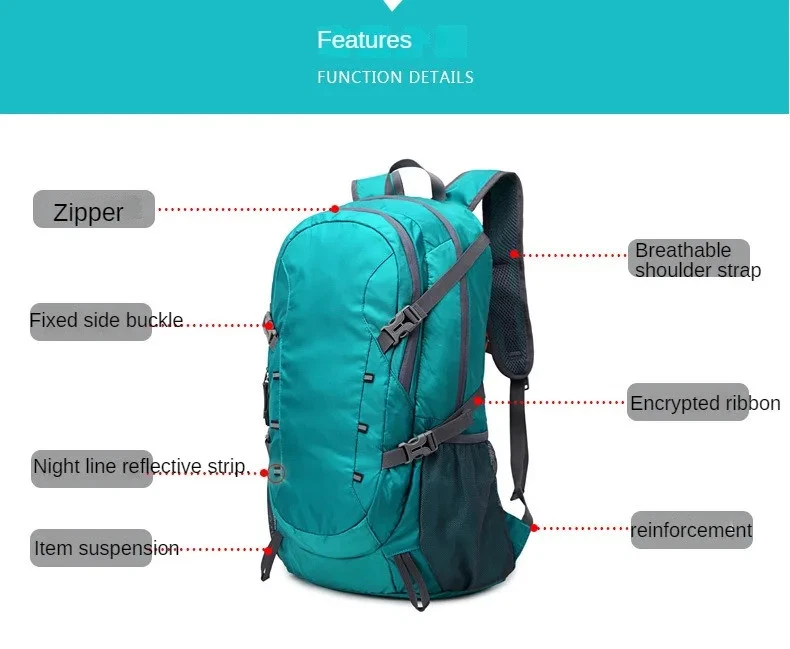 - Product color: flower leaves, black, green - Product specification: 33 * 20 * 53cm - After packaging: 22 * 25 * 5cm {neutral, packed after folding} - Product capacity:40L - Material: waterproof and tear resistant nylon Features: - Folding storage, dry and wet separation, anti splashing, light and breathable - Dry wet separation: with this feature upgrade, a waterproof wet pocket is added to the main compartment. The zipper on the back of the backpack leads to the internal dry wet separation pocket, so as to better separate sweaty clothes, towels or other personal items after swimming or exercise. Package included: - 1pcs * Outdoor camping hiking backpack