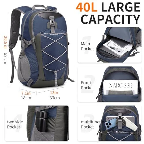 40L Hiking Backpack Lightweight Daypack Waterproof 40L-0.9lb A5-royal Blue
