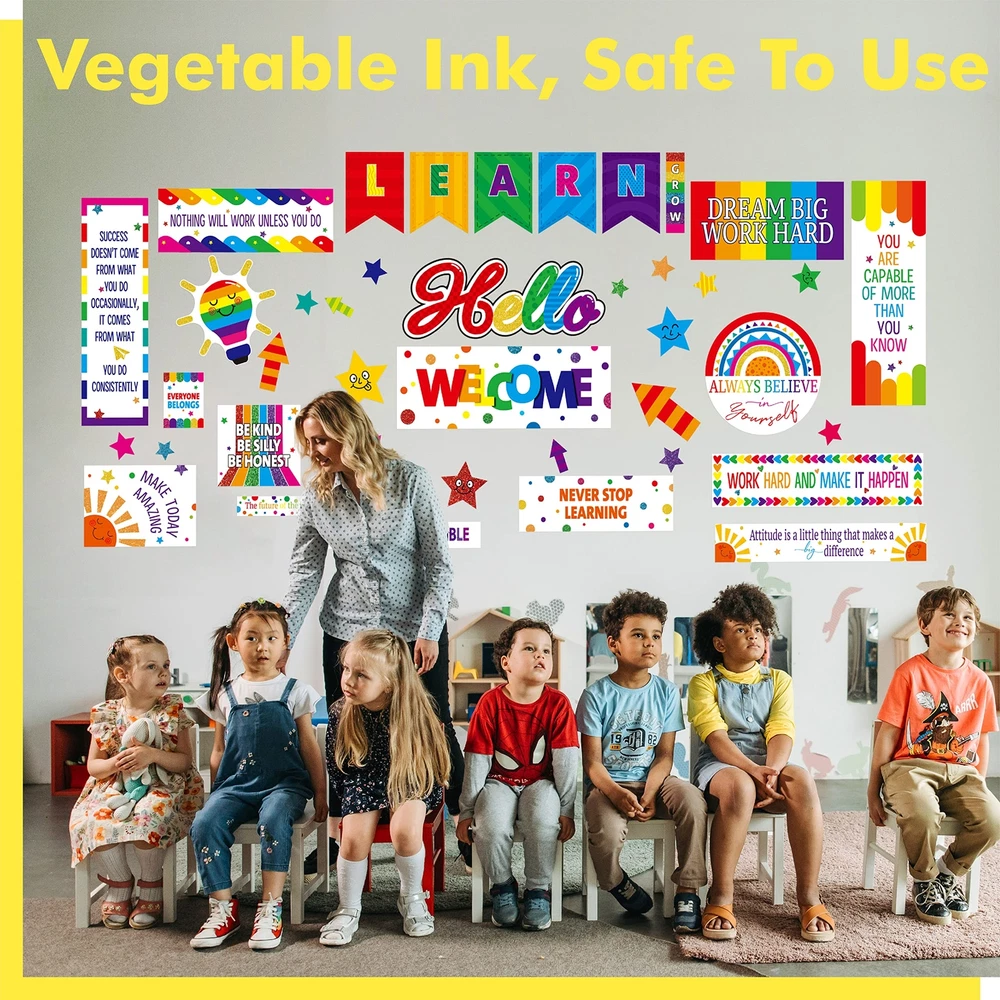 Value Pack: The decoration set comes with 40pcs color style cards, sufficient quantity is quite enough to meet your decorative needs. Motivational words with colorful and eye-catching patterns provide more energy and bring the classroom and bulletin board a new look. Premium Material: The posters are made of sturdy cardstock, durable and handy. Printed with premium vegetable ink, no odd smell and safe to use. Coated with PET film, waterproof, reusable and easy to clean with damp cloth. Unique Design: The bulletin board decor set is in colorful style design, bright-colored and eye-catching. The whole set features inspirational positive sayings in delicate artistic fonts plus various colorful elements, not only visually stunning but also engaging and motivational. Great Decoration: The different quotes are great daily reminders for students to make them try their best and keep a positive attitude. It is a great way for the school year to encourage kids’ responsibility, help them live up to their potential, remind them to think differently about learning. Wide Application: It can be applied as bulletin board decorations, walls, doors, windows, desks. Suitable for different activities, school parties, back to school parties, baby shower, any kids' room and other events. A delicate poster set is ideal for any decoration activity, bringing you more enjoyment.