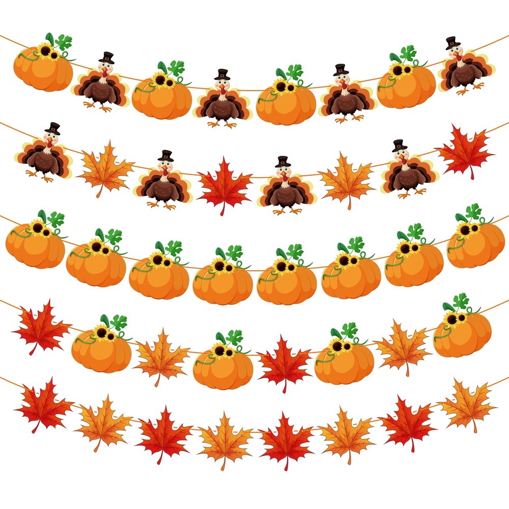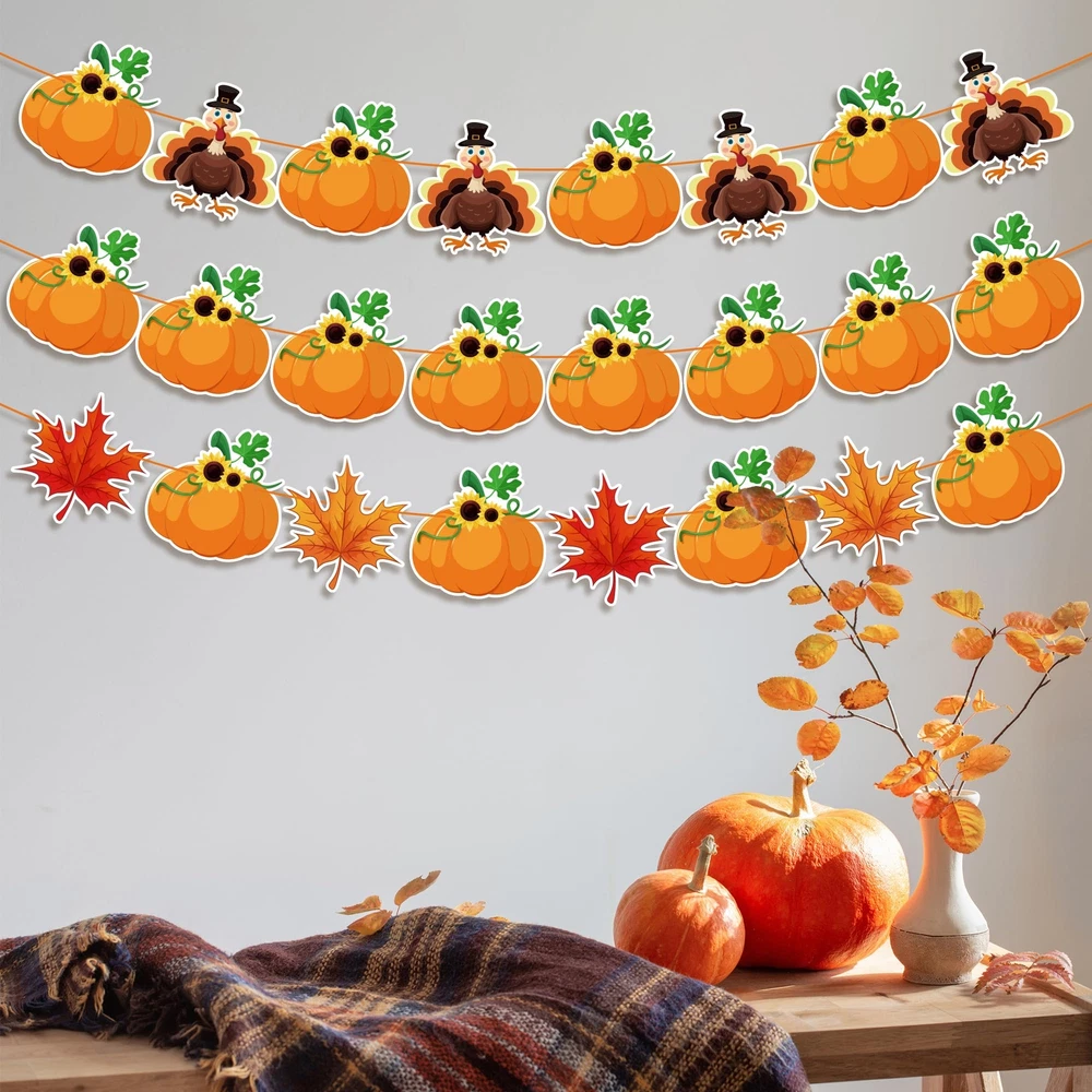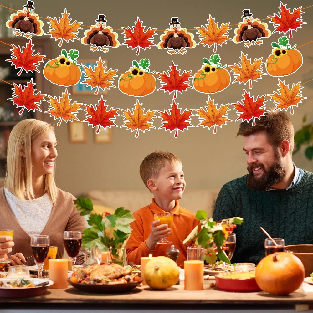 Thanksgiving Decorations Festive and Charming Thanksgiving Decor: Enhance your Thanksgiving celebrations with our exquisite banner featuring delightful turkey, pumpkin, and maple leaf patterns. Perfect for creating a warm and festive atmosphere at your home or office. Durable and Reusable Design: Crafted from high-quality materials, our Thanksgiving banner is built to last. It's easy to hang and can be stored for reuse year after year, making it a sustainable choice for beautiful holiday decor. Generous Size for Maximum Impact: Measuring 9 feet in length, this Thanksgiving banner includes 40 intricately designed pieces that will make a stunning focal point at any gathering. Impress your guests with this eye-catching decoration. Versatile Decoration for Any Space: Whether it’s your living room, dining area, or office, our Thanksgiving banner adds a festive touch anywhere. Ideal for Thanksgiving dinners, autumn-themed parties, or seasonal photoshoots, it’s a versatile addition to your decor collection. Celebrate with Joy and Style: Share the spirit of Thanksgiving with this beautifully crafted banner. Its unique patterns of turkey, pumpkin, and maple leaf embody the essence of the season, making it a perfect accessory for your festive celebrations.