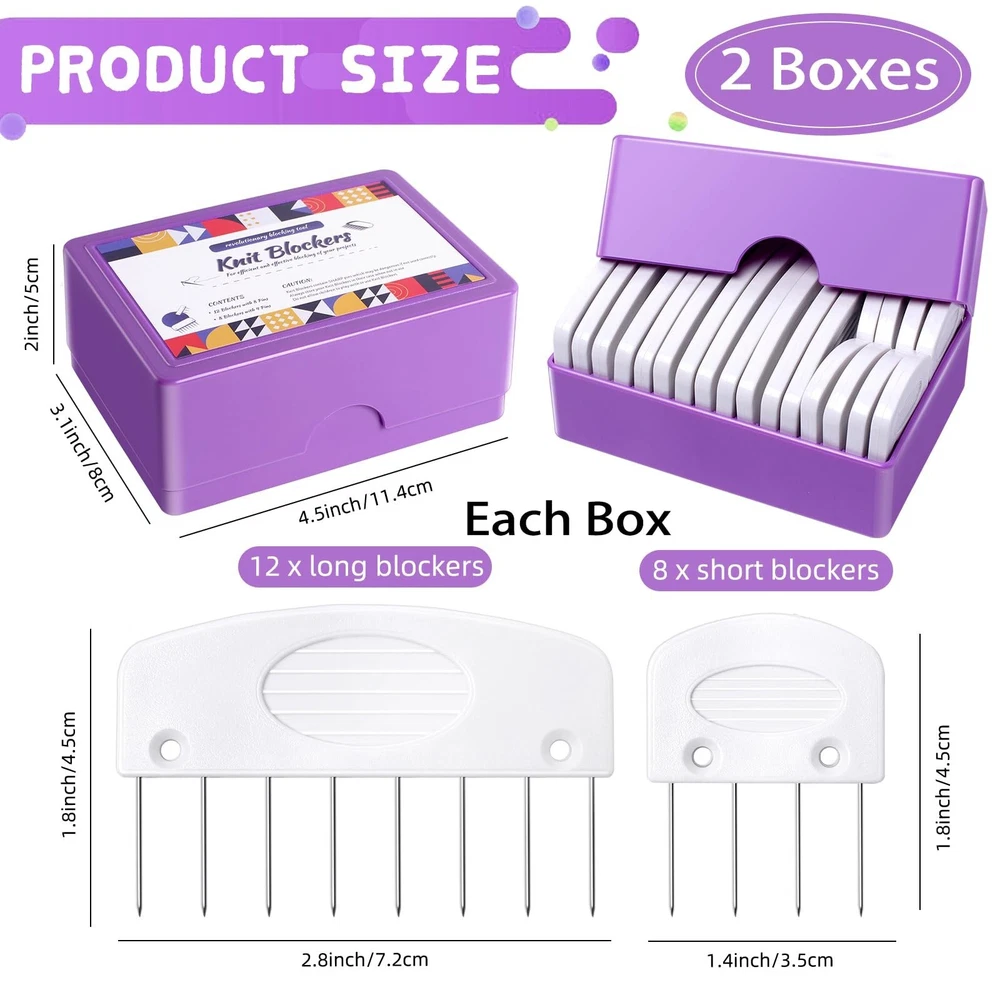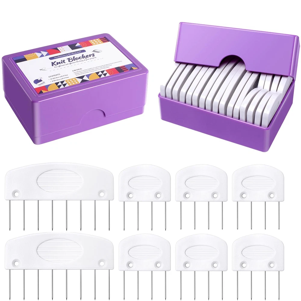 40Pcs Knit Blockers & Pins Kit, Knit Blocking Combs for Blocking Knitting, Crochet, Sewing Lace or Needlework Projects Tool Device Product Details Color: S2-Set 2 Brand: Berovskki MPN: BE8253 UPC: Does not apply EAN: Does not apply Product Dimensions: 7.48 x 7.48 x 11.81 inches Item Weight: 13.4 ounces Manufacturer: Berovskki Date First Available: August 9, 2023 Knit Blockers: You will receive a box of knit blocking in 40Pcs. ★Knit Blockers: You will receive a box of knit blocking in 40Pcs. ★Knit Blocking Combs Set: Includes 12pcs8-pin blockers, 8pcs4-pin blockers,Total 20Pcs in a plastic box. You will get 2 boxes. ★Superior Design: These knit blocking pins can ensure the even distribution of pins across your work and it also possible to attach a string through the knit blockers to maintain a consistent tension. ★Well Stored: Each comb are stored in a individual slots and foam to protect the tips of the pins. Caution: Keep out of reach of children and handle with care due to sharp pin points. ★Save Time & Good Tool for Your Crafts.