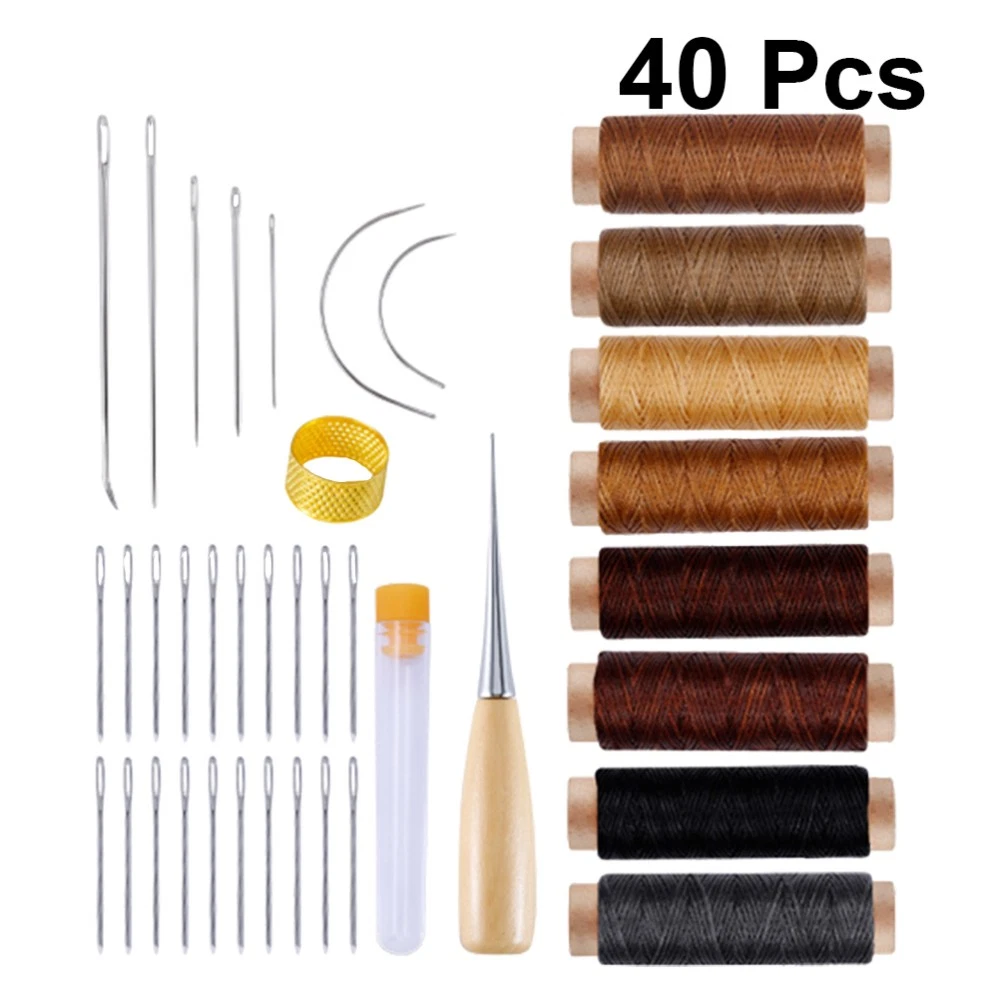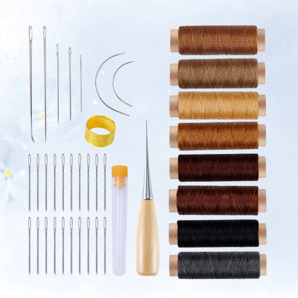 Leather Sewing Kit with Upholstery Repair Thread Stitching Needles and Awl Hand Tools
