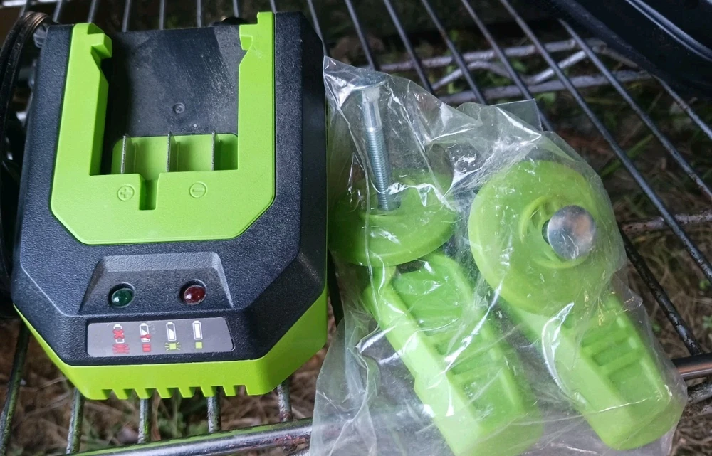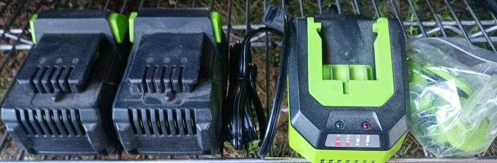 All pieces are there. Everything works. New no box. This 40V cordless push lawn mower is perfect for keeping your lawn looking neat and tidy. With a cutting width of 16 inches, it is ideal for medium to large sized lawns. This mower features a mulching option, allowing you to leave clippings on the lawn to add nutrients back into the soil. It also comes with a bagging option, so you can easily dispose of clippings if needed. In addition, this mower comes with two 4.0Ah batteries and a charger, ensuring you have enough power to get the job done. The battery power source eliminates the need for cords, allowing for more freedom of movement around the lawn. This walk-behind lawn mower is a great addition to any home and garden.