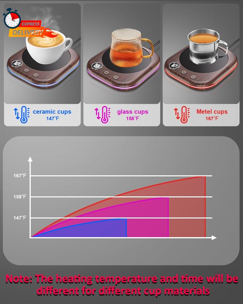 Store New Arrivals Add to Favorite View Feedback Contact Mug Warmer,40W Coffee Mug Warmer for Desk with Temperature Display, 4 H Auto Shut Off, 3 Temp Settings & 1-12H Timer, Smart Electric Beverage Warmer for Coffee, Tea, Water, Milk and Coco(Wood Grain) Description Item model number TB-018 Maximum Temperature 167 Degrees Fahrenheit Lower Temperature Rating 113 Degrees Fahrenheit Power Source Corded Electric Color Wood Grain Upper Temperature Rating 167 Degrees Fahrenheit Wattage 4E+1 Material Metal, Plastic Package Dimensions 7.99 x 5.79 x 1.54 inches Item Weight 9.9 ounces Number of Trays 1 Voltage 120 Volts 【Fast&Consistent Heating】 The mug warmer uses a PTC heating element to provide reliable and even heating, maintaining the optimal temperature for your beverage. 【Temperature Control】 The device offers three temperature settings, 113°F 131°F 167°F allowing users to customize the warmth level to their preference for their coffee, tea, or other beverages. 【Timing Function】 Timer 1 to 12 hours, ensuring your drink stays at the perfect temperature for the desired duration.The machine will automatically shut down after working continuously for 4 hours by default. 【Versatile Usage】 In addition to heating up daily beverages such as coffee, milk, and hot chocolate, the device can also be used to gently heat candles, wax melts, and other items for aromatherapy or hair removal wax. 【Package in Detail】 MXMZHXU Mug Warmer *1; Silicone Trivet Mat*1;Model:TB-018; Voltage:110V-120V; Power:40W; Cord Length:59 inch; Size:5.7*5.3*1.1inch(LWH); Color:Wooden. Product description Touch the switch button for 1-3 second to shut off/on. Press and hold the timer button for 1-3 seconds to turn off /on the light strip. ABOUT US We offer the best prices around on high quality products. Our E-store includes media such as books, movies, music and games while offering electronics, toys, sporting apparel, clothing, tools, general home, garden items and more. SHIPPING We are always working hard to ensure your package arrives as soon as possible. Please understand that some factors like weather, high postal traffic, and the performance of shipping companies are outside of our control. We offer free shipping to the lower 48 states and ship within 2 business days of payment, usually sooner. We do not accept P.O. Boxes. Please provide a physical address. For shipping outside of the continental USA, we only use eBay's Global Shipping Program.The item is shipped to KY and then sent to the rest of the world. International customers are responsible for all duties and taxes. Continue to check out in order to calculate costs for shipping the item to your country. Messages regarding eBay's Global Shipping Program MUST be directed at eBay EXCLUSIVELY. RETURNS We offer a 30-Day Return Policy on items which you are not completely satisfied with. You have the option for a full-refund or an exchange of the item. No returns are available on items shipped outside of the USA. PAYMENT We accept PayPal. CONTACT US This page content is yet to come Please ad us to your favorite seller and visit again later Thank You CUSTOMER SATISFACTION We try our very best to make sure every customer is completely satisfied. If there's a problem, message us! We're happy to help. WE ACCEPT Copyright © 2021 AutoDS. | All Rights Reserved
