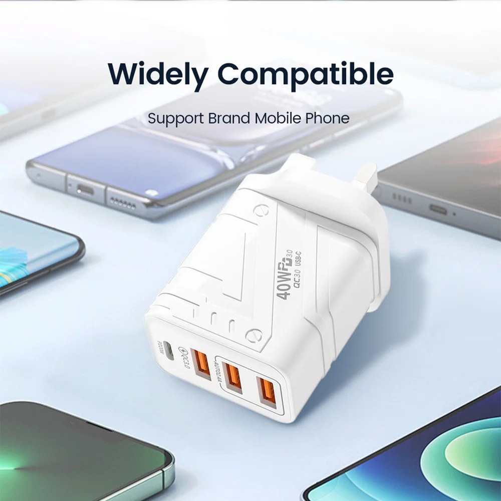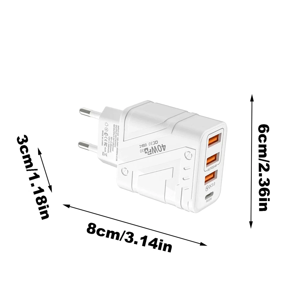 3-Port USB+Type C Wall Charger 40W USB Fast Quick Charge Power Adapter Plug Bullet Points: Quick Charge: Experience fast charging for smartphones, tablets, or other electronic devices that work with the PD protocol, providing up to 40W output with advanced PD technology. Convenient Charging Solution: Cater to all your charging needs with our 3USB+1PD multi-port charger. Fast and efficient, it can charge up to four mobile devices simultaneously, making it a perfect mobile phone charger with multiple ports. Wide Compatibility: Featuring a plug design that complies with British/US/European standards, our USB wall plug is an ideal option for frequent travelers. Its compact size makes it easy to pack, and multiple specifications ensure suitability for all your devices. Small and Lightweight: Our USB wall plug adapter is a travel-friendly design, perfect for families or teams on the move. Small and lightweight, easily pack it in your back or suitcase for an easy charging experience anytime, anywhere. Enhanced Security: A built-in smart chip ensures a safe charging process by providing multiple protection against overvoltage, overcurrent, short circuit, and overtemperature. Meet all your charging requirements with our USB Wall Plug Fast Charging. With its efficient charging capabilities and 3 USB + 1 PD multi-port charger, it's the perfect travel companion for your whole family or team. Its plug design and built-in smart chip make sure all your devices charge quickly and safely. Specifications: Product name: USB Wall Charger Block Product material: PC fireproof material Plug: triangular British standard/rounded European standard/flat US Standard Product size: about 8x6x3cm / 3.14x2.36x1.18inch Product features: intelligent digital display, 40W fast charging, intelligent chip to prevent overheating and short circuit Packing List: 1* Fast USB Charger Block Note: Due to different lighting and screen settings, the item color may be slightly different from the picture. Due to different manual measurements, please allow a 1-2cm difference in size. 1.You can make a Credit payment via Paypal.Paypal will let you use MasterCard,Visa to pay. 2.Payment should be completed within 5 days after auction closed, or unpaid dispute will be filed for an closing auction.An unpaid case will be filled after 4 days. ● We strive for 100% customer satisfaction ! ● Positive Feedback is very important to us. ● We hope that you contact us immediately BEFORE you give us neutral or negative feedback, so that we can satisfactorily address your concerns. ● We promise to offer the lowest price and high quality produce. Dear buyers : ● Welcome to my store ! ● Your satisfaction is our top goal,we appreciate your patronizing. ● If you have any questions, please contact us before leave negative or neutral feedback, we will try our best to solve the issue to your satisfaction, thanks ! ● If you are satisfied with our service, please rate the details of the transaction (Detailed Seller Ratings) on eBay. ● Please always talk to us via ebay Message. ● We appreciate your business and look forward to growing our e-Bay sales with satisfied customers.