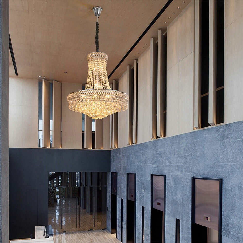 This stunning chandelier instantly elevates any room with its modern elegance! The K9 crystal raindrops sparkle beautifully, casting gorgeous light patterns, while the stainless steel frame adds sleek durability. Installation was straightforward, and the brightness is perfect—bright yet warm. It looks way more luxurious in person than in photos. Definitely a statement piece that gets compliments from every guest!