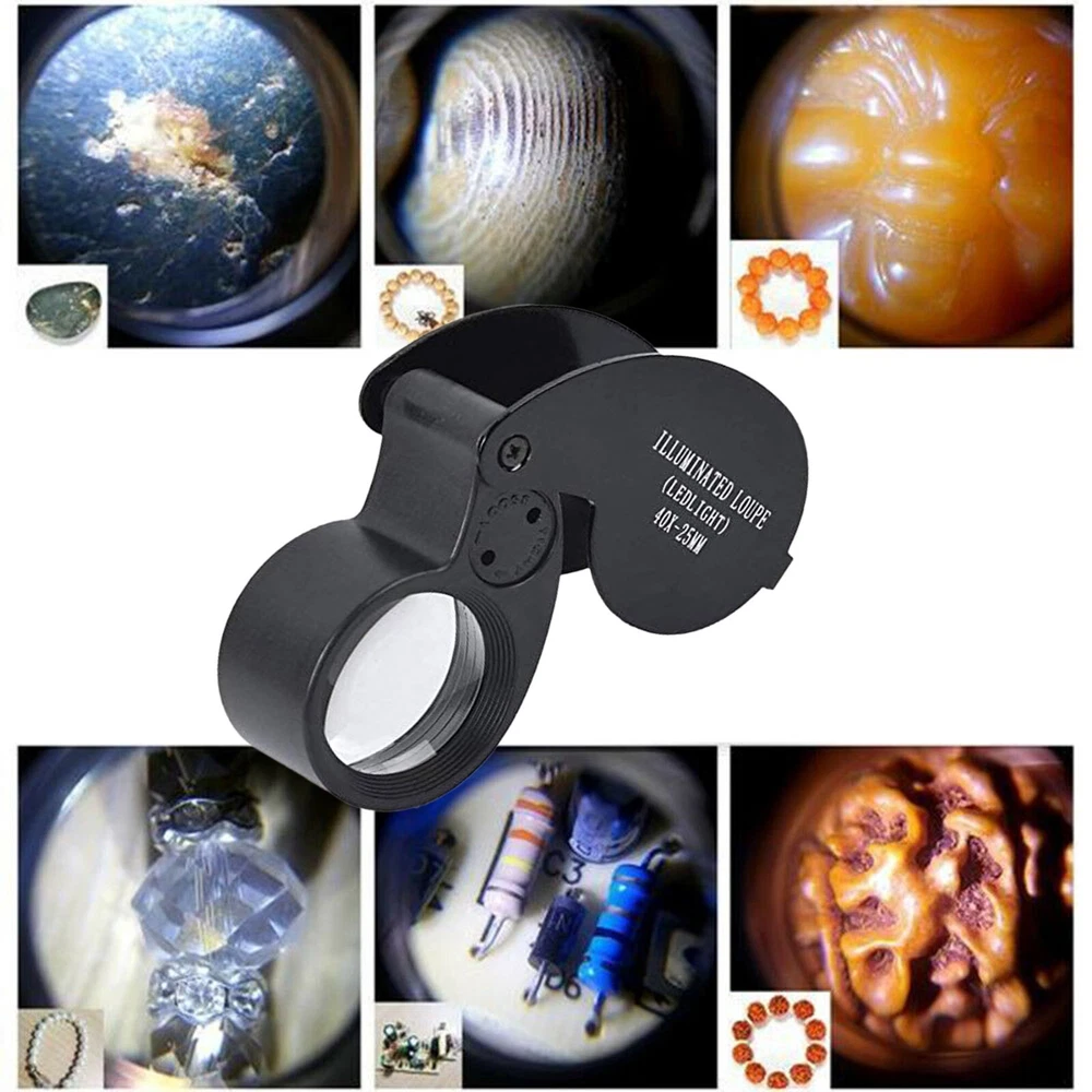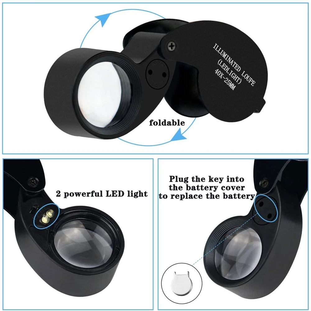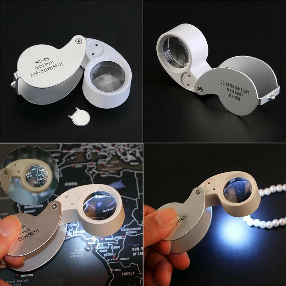 40X LED Illuminated Jewelry Loupe Magnifier with Pocket Clip for Jewelers