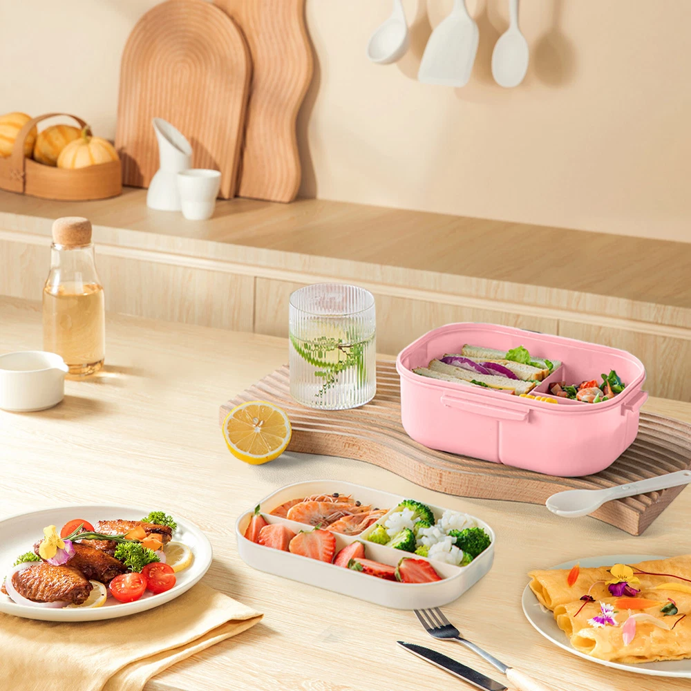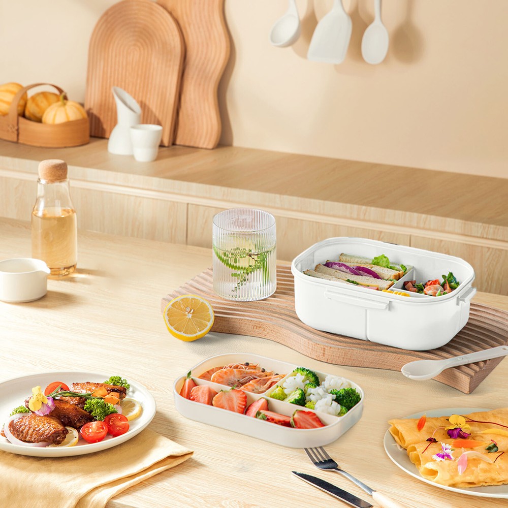 Note: A small wet wipe is given away for free Features: ❤ Material:PP/Silicone. ❤ Size:8.27(L)*5.71(W)*3.39(H) inches;Capacity:40oz/1200ml. ❤ Complete Set: Get a full lunch set with 1 lunch , 1 spoon, 1 fork, and a dressing bowl for daily convenience. ❤ Smart Compartment Design: Featuring 3 main compartments and a middle-layer tray, the lunch keeps foods separated. The dressing bowl extra versatility. ❤ Refrigerator Safe and Leak-Proof: Made from - PP plastic, it’s durable and drop-. Silicone gaskets and locking buckles no leaks, while the container is microwave & dishwasher (lid excluded). Product Description: Material: PP Color: as the picture shows, (Due to the difference between different monitors, the picture may have slight color difference. please make sure you do not mind before ordering, Thank you!) Package includes: 1* the product itself; 1*Wet wipes