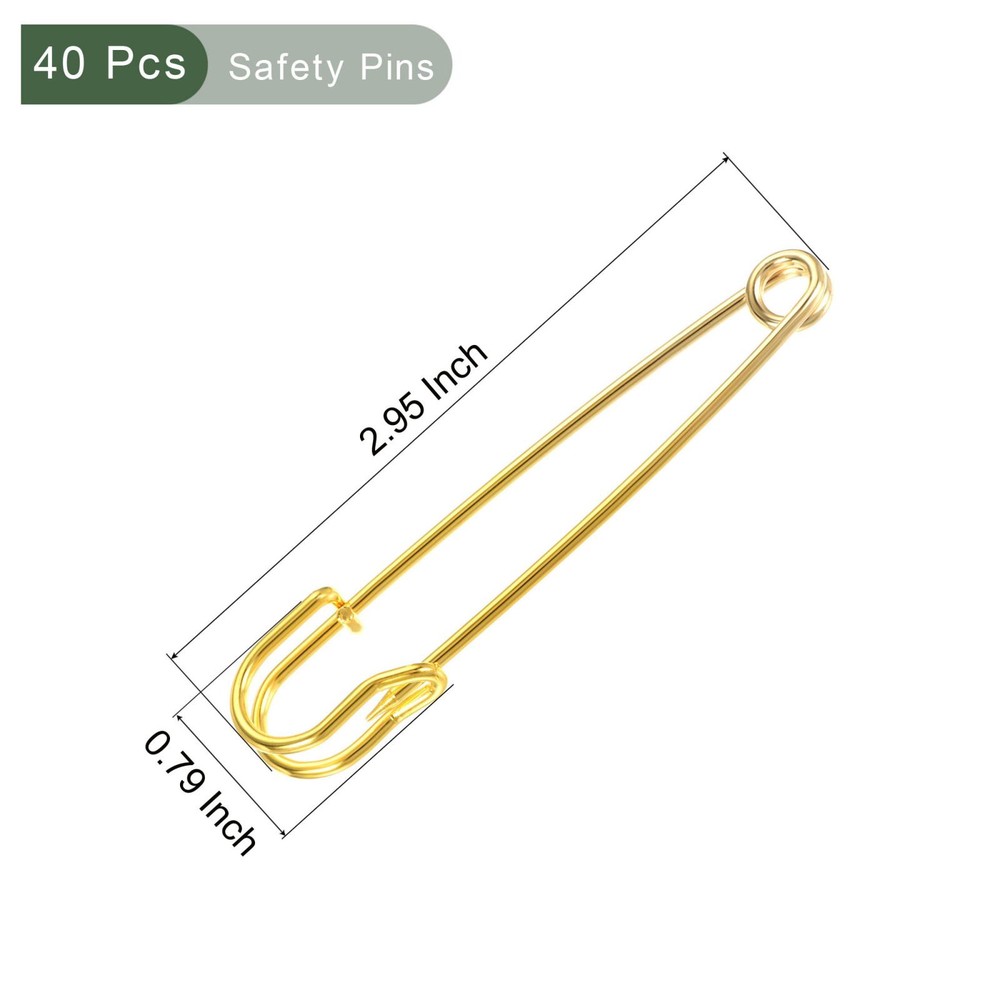 40 Gold Tone Safety Pins for Sewing Crafts Clothing 1.97 Inch Metal Pins