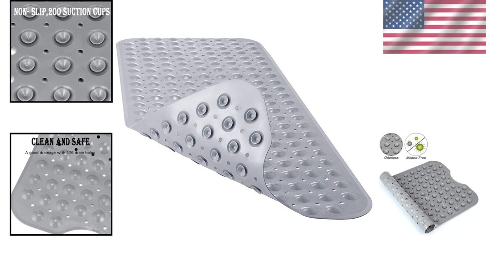 40x16 Non-Slip Bath Mat with Suction Cups – Extra Large, Machine Washable - Grey ‹ › ‹ › ‹ › ‹ › ‹ › ‹ › ‹ › 40x16 Non-Slip Bath Mat with Suction Cups Extra Large, Machine Washable - Grey Key Features: Extra Large Dimensions: Measuring 40 inches by 16 inches, this mat provides excellent coverage for your bath or shower area. No Chemical Smell: Made from high-quality vinyl material, our bath mat is designed without harmful chemicals, ensuring a safe environment for you and your loved ones. Non-Slip Safety: Equipped with 200 powerful suction cups, our shower safety mat grips firmly to smooth surfaces, offering 360-degree safety protection. Unique Pebble Design: With a pebble-like surface, experience a soothing massage while you shower, transforming your bathing ritual into a luxurious experience. Efficient Drainage: 176 strategically placed drain holes promote optimal water circulation, keeping the mat clean and preventing water accumulation. Maintenance and Care: Machine Washable: Simply toss the mat in the washing machine for hassle-free cleaning, ensuring it looks fresh and inviting after every wash. Durable and Long-Lasting: Air dry for of safe, healthy, and dependable use in your bathroom, gym, or spa. Important Safety Notice: This bath mat is designed specifically for smooth and clean surfaces; avoid using on textured or tiled areas to ensure maximum safety. Do not use bath oils as this may cause slipping; we recommend allowing the mat to air out for 24 hours for optimal freshness upon first use. Why Choose Our 40x16 Non-Slip Bath Mat? Transform your bathing experience with our Extra Large Non-Slip Bath Mat, where safety and luxury meet. With its elegant pebble design, powerful suction cups, and easy maintenance, this mat is a perfect addition to any quality-conscious home. Ensure your family’s safety with a product that combines functionality with sophistication. Make bathing a sublime experience and order your Bath Mat today! Shipping Free & Fast Shipping - We offer free shipping to most of the USA with a normal delivery time of 3-7 days. However, due to the current situation, additional delivery time (up to 3 weeks) may be required for some items. Alternative Carriers - We may use alternative carriers (e.g. USPS, FedEx, UPS, etc.) to ensure your package arrives safely and on time. Due to the use of multiple carriers, we are unable to provide a tracking number automatically. Handling Time - Orders are processed and shipped within 1-2 business days of receiving cleared payment. Shipping Restrictions - Shipping to Alaska, Hawaii, Puerto Rico, Guam, and other US territories may incur shipping charges or delivery restrictions. Please contact us before ordering, or your order can be refunded/cancelled. State Restrictions - There may be restrictions based on your state of purchase. For example, certain items may not be shipped to California due to state regulations. Contact for Tracking Updates - If you require tracking updates or have any concerns about the delivery of your order, please feel free to contact us, and we will be happy to assist you. Return 30-Day Hassle-Free Returns - We want you to be completely satisfied with your purchase. If you are not, you can return the item within 30 days of receiving it for a full refund or exchange. Easy Return Process - To start a return, simply contact us and we will provide you with a prepaid return shipping label and detailed instructions. Restocking Fee - There are no restocking fees for returns. However, the buyer is responsible for return shipping costs if the return is not due to a seller's error. Refund Processing Time - Refunds will be processed within 5 business days of receiving the returned item in its condition. Payment We accept all major credit cards, PayPal, and Apple Pay for your convenience. Your payment information is secure and encrypted to ensure a safe and seamless transaction. Please complete your payment within 3 days of purchase to avoid any delays in shipping. Feedback Your feedback is extremely important to us. We strive to provide the best products and customer service possible. If you are satisfied with your purchase, please take a moment to leave us a positive review. If you have any concerns or issues with your order, please contact us before leaving negative feedback. We are committed to resolving any problems and ensuring your satisfaction. Contact Us If you have any questions or concerns, please feel free to out to our customer support team. You can contact us through the eBay messaging system. We are available Monday to Friday, 9:00 am to 5:00 pm EST, and we will do our best to respond to your inquiry within 24 hours. Buy it now and enjoy a pleasant shopping experience! Item Height: Non Slip Bath Mat Unit Quantity: 1 Material: Synthetic,Vinyl Set Includes: Bath Mat,Shower Mat Room: Any Room,Bathroom,Gym,Spa Features: Anti-Slip,Machine Washable Department: Adults,Kids,Unisex Baby & Toddler Care Instructions: Machine Wash Type: Shower Mat Color: Gray Number of Items in Set: 1 Shape: Rectangle Unit Type: lb