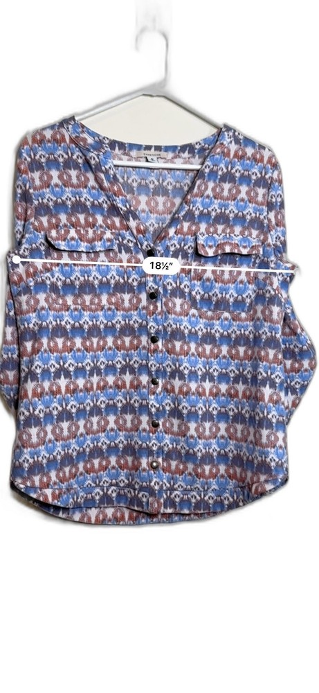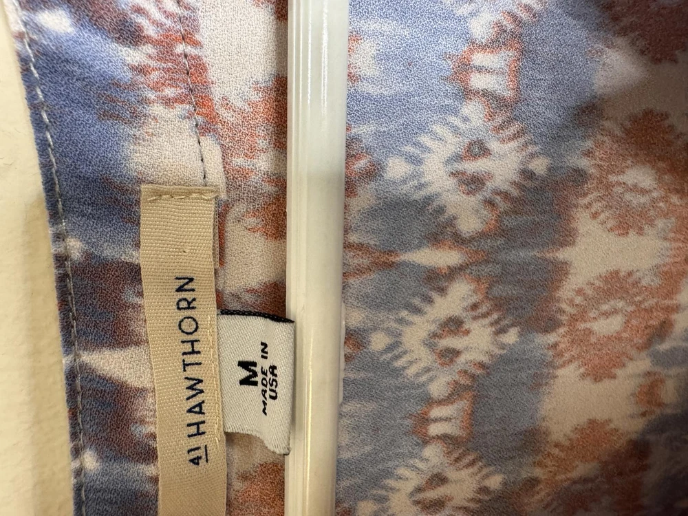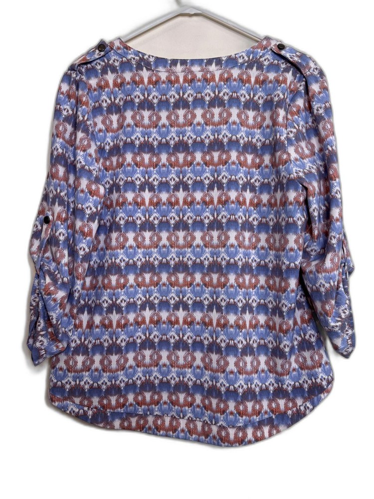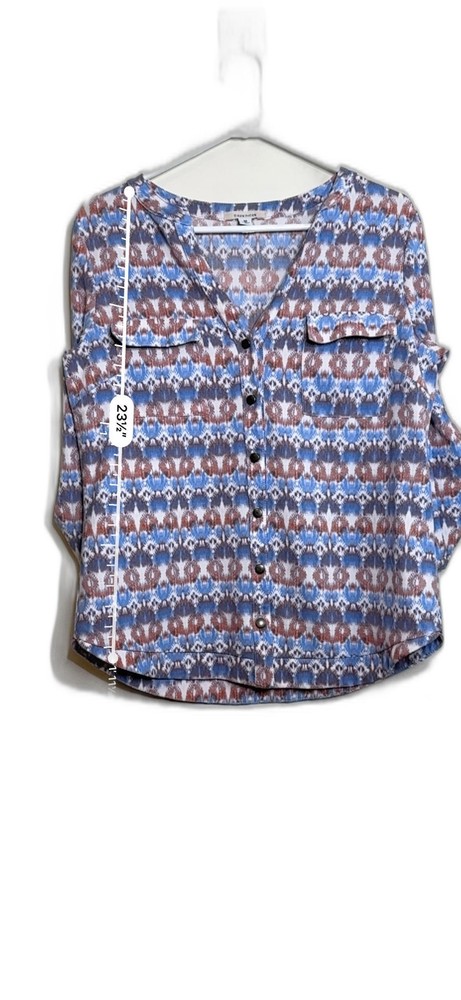 41 Hawthorn women M paisley print button up blouse Pink/Blue Pockets 3/4 sleeves