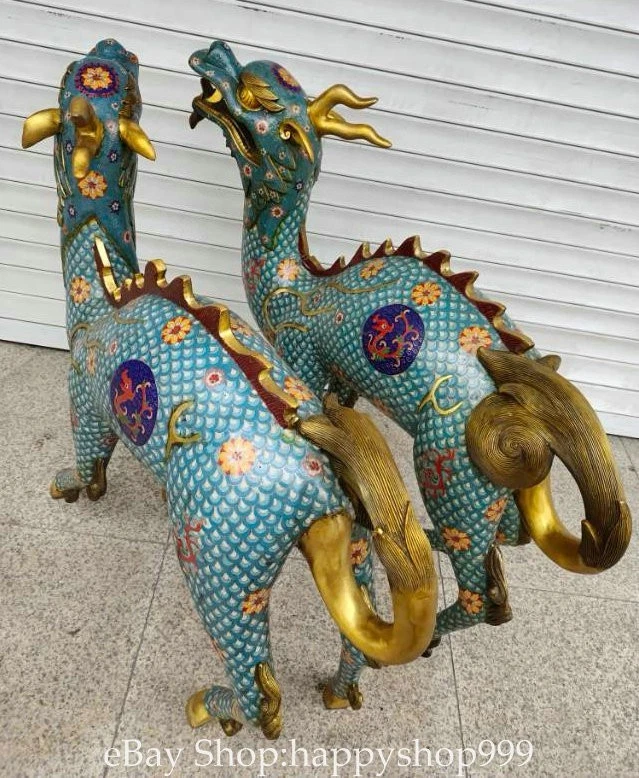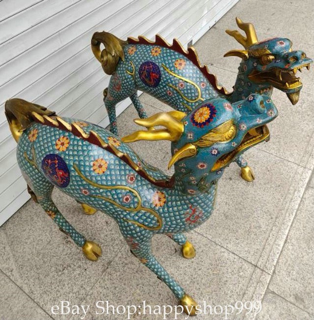 41.2" China Pure Copper Cloisonne Gilt Kylin Beast Wealth Statue Sculpture Pair You are bidding for a 41.2" China Pure Copper Cloisonne Gilt Kylin Beast Wealth Statue Sculpture Pair. It is in good condition without broken or fixing as photos showing and rare style from antique market. This is a great piece of valuable collection, a valuable personal alter or a very good present. the handwork is very fine with incredible detailling. Don't miss out this chance to get it . All the items we are showing is only one available and You will get the same one as photos. Condition Material : Pure Copper Cloisonne Gilt Origin : Chinese Style : Same as photos showing Size : High 41.2 Long 38.4 Breadth 15.6 (inch) Weight : 120.0 KG----included the weight of packing materials Shipping cost by EMS or SF express (5-12 days) : Free Shipping. Terms of Sale We recommend the combine shipping and wholesale order , If you won more items once that we will give you a 5-10% discount off the price. Also We encourage you to make an offer if you're interested. Each piece is a testament to traditional craftsmanship and will make a stunning addition to any collection or home decor. Our priority is to ensure your satisfaction. Feel free to reach out with any questions or for additional information. Thank you for considering our items. About us We are business in Asian Antique and old collectable items over 12 years. My father is running them from China, korea, Singapore,Japan and Nepal every year and hold many rare items in stock. They are inculding the diference style porcelian , Cloisonne , Bronze。 Pottery . Silver also jade carving from difference time period. We are looking towards to have the friends online for working each other and learning. Thank you. Contact Me If you're in any way dissatisfied with your purchase or any problem of your order condition , Please let me know through "MY MESSAGES" or "Ask Seller Questions" though eBay. We will quickly to answer and try best to resolve it well for your happy . We are committed to ensuring that you are completely satisfied with every transaction. 100% Satisfaction guaranteed ! We will reply your mail with in 24 hours normally. Thanks for looking! We believe you will enjoy with our other items too !