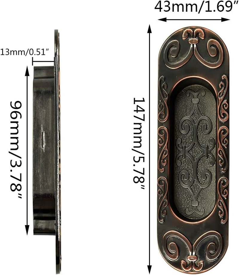 Store New Arrivals Add to Favorite View Feedback Contact 4.13" European Recessed Flush Pull Handle, Stainless Steel Sliding Door Handle, Inset Antique Recessed Pull Handle for Cabinet Closet Dresser Drawer, Antique Copper Description Number of Items 1 Country of Origin China Shape Recessed Finish Type Polished Theme vintage, antique Batteries Included? No Unit Count 1.0 Count Batteries Required? No Finish Polished Special Feature Easy to Install, Durable Material Stainless Steel, Copper Handle Material Stainless Steel, Copper Package Type Standard Packaging Metal Type Stainless Steel, Copper Is Discontinued By Manufacturer No Specific Uses For Product Cabinets, Drawer Item Package Quantity 1 Item Weight 4.8 ounces Size 147mm/5.78" Style Antique Copper 147mm/578" Long Handle Type Pull Handle Special Features Easy to Install, Durable Exterior Finish Stainless Steel, Copper Color Antique Copper Hand Orientation Ambidextrous Center To Center Spacing 3.78 Inches Included Components Screw Product Dimensions 5.79"L x 1.69"W Number Of Pieces 1 [ Advanced Design ] Manufactured from High quality Stainless Steel in Antique Copper, these handles have a very high quality finish, oval modern vintage style Recessed Flush Pull. Always shiny never rusty. The surface and all edges are finely chamfered with polished by hours, touches soft, smooth and quality feeling. [ High Quality Materials ] The recessed handle pull is made of high-quality Stainless Steel and Antique Copper, so the recessed drawer pulls are sturdy and durable. The surface is protected by a coating, it will not rust after a long time of use. [ Multi-purpose ] The flush sliding door pull is practical and can be applied to many places. It's suitable for sliding barn doors, pocket doors, sliding doors, doors fitted with roller catches applications. Also suits with cabinets, furniture, and kitchen applications. [ What You Get ] 1 Pcs vintage barn door pulls and 2 pcs screws. Overall: 5.78*1.69 inch / 147*43 mm (L*W); Groove Depth: 0.51 inch / 13 mm; Mounting Hole Distance: 3.78 inch / 96 mm. About Us Biaungdo focus on retail and wholesale hardware items and other accessories, all of the products we sell are strictly selected, we provide high quality, the most popular, affordable price products to worldwide. Feature 1. Suitable for cabinets, furniture, and kitchen applications. 2. Includes a flush pull handle and screws - no complicated installation. 3. Made from High quality Stainless Steel in Antique copper, these handles have a very high quality finish, oval modern vintage style Recessed Flush Pull. Always shiny never rusty. 4. Because pull handles are mounted on the exterior they require clearance, the Flush Handle is inset into the door, thus eliminating the protrusion and allowing the door to open without resistance. 5. The finger door pulls handle is designed to suit with most of internal and external doors: sliding barn doors, pocket doors, bifold doors, sliding doors, doors fitted with roller catches applications. Specification Material: Stainless Steel & Copper Color: Antique Copper Overall: 5.78*1.69 inch / 147*43 mm (L*W) Groove Depth: 0.51 inch / 13 mm Mounting Hole Distance: 3.78 inch / 96 mm Package Included 1 x Recessed Pull Handle 2 x Screws Warmly Note 1. The colors may have difference as the different display, please understand. 2. Please allow 1-2mm error due to manual measurement, please make sure you do not mind before you bid. ABOUT US We offer the best prices around on high quality products. Our E-store includes media such as books, movies, music and games while offering electronics, toys, sporting apparel, clothing, tools, general home, garden items and more. SHIPPING We are always working hard to ensure your package arrives as soon as possible. Please understand that some factors like weather, high postal traffic, and the performance of shipping companies are outside of our control. We offer free shipping to the lower 48 states and ship within 2 business days of payment, usually sooner. We do not accept P.O. Boxes. Please provide a physical address. For shipping outside of the continental USA, we only use eBay's Global Shipping Program.The item is shipped to KY and then sent to the rest of the world. International customers are responsible for all duties and taxes. Continue to check out in order to calculate costs for shipping the item to your country. Messages regarding eBay's Global Shipping Program MUST be directed at eBay EXCLUSIVELY. RETURNS We offer a 30-Day Return Policy on items which you are not completely satisfied with. You have the option for a full-refund or an exchange of the item. No returns are available on items shipped outside of the USA. PAYMENT We accept PayPal. CONTACT US This page content is yet to come Please ad us to your favorite seller and visit again later Thank You CUSTOMER SATISFACTION We try our very best to make sure every customer is completely satisfied. If there's a problem, message us! We're happy to help. WE ACCEPT Copyright © 2021 AutoDS. | All Rights Reserved