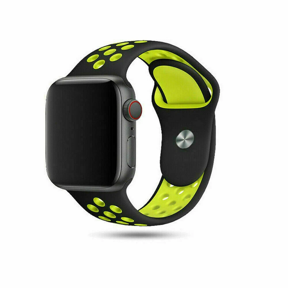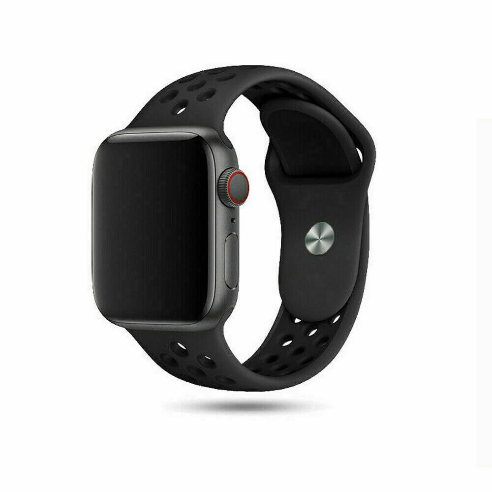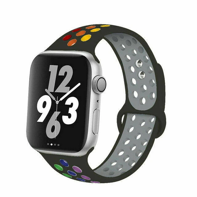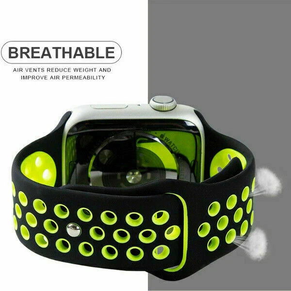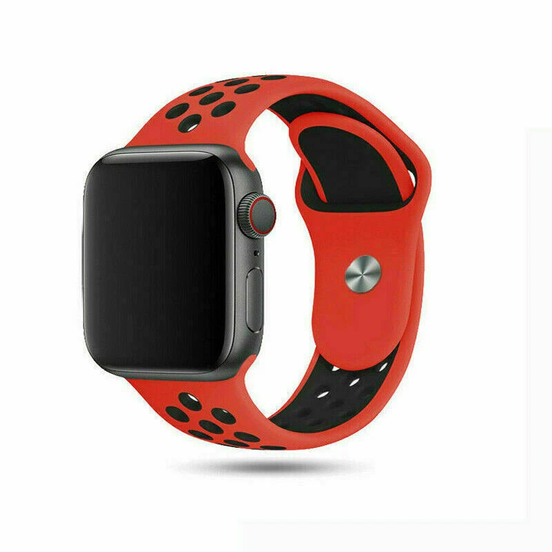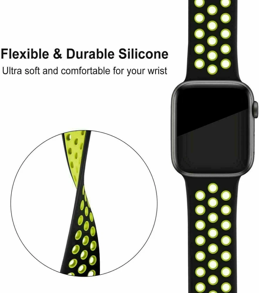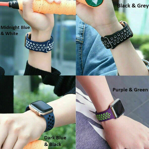 40/44/41/45mm iWatch Silicone Sport Band Strap for Apple Watch Ultra 9 8 7 6 5 SE Features: 100% Brand New & High Quality: Made with hypoallergenic, nickel-free stainless steel metal parts, ensuring comfort and safety. Durable Silicone Material: Crafted from pure silicone, the band is flexible, durable, and soft, providing a comfortable fit for everyday wear. Easy to Wear & Install: The band comes with watch lugs on both ends, securely locking onto your Apple Watch without the need for tools, making it easy to install and remove. Breathable Design: Air-permeable construction promotes airflow, keeping your wrist cool. The two-toned band with a smooth finish adds a sporty and stylish look to your Apple Watch. Fit for Various Wrist Sizes: 38mm/40mm/41mm S/M size: Fits 130-180mm wrists. 38mm/40mm/41mm M/L size: Fits 150-200mm wrists. 42mm/44mm/45mm/49mm S/M size: Fits 140-190mm wrists. 42mm/44mm/45mm/49mm M/L size: Fits 160-210mm wrists. Compatible With: Apple Watch Nike+ / Ultra / Series 9 / Series 8 / Series 7 / Series 6 / Series 5 / Series 4 / Series 3 / Series 2 / Series 1 / SE Package Includes: 1x Silicone Sport Band (Note: Apple Watch is not included.) Note: All bands come with a single buckle. Colors in the photos may vary slightly due to lighting.