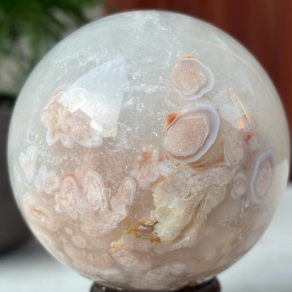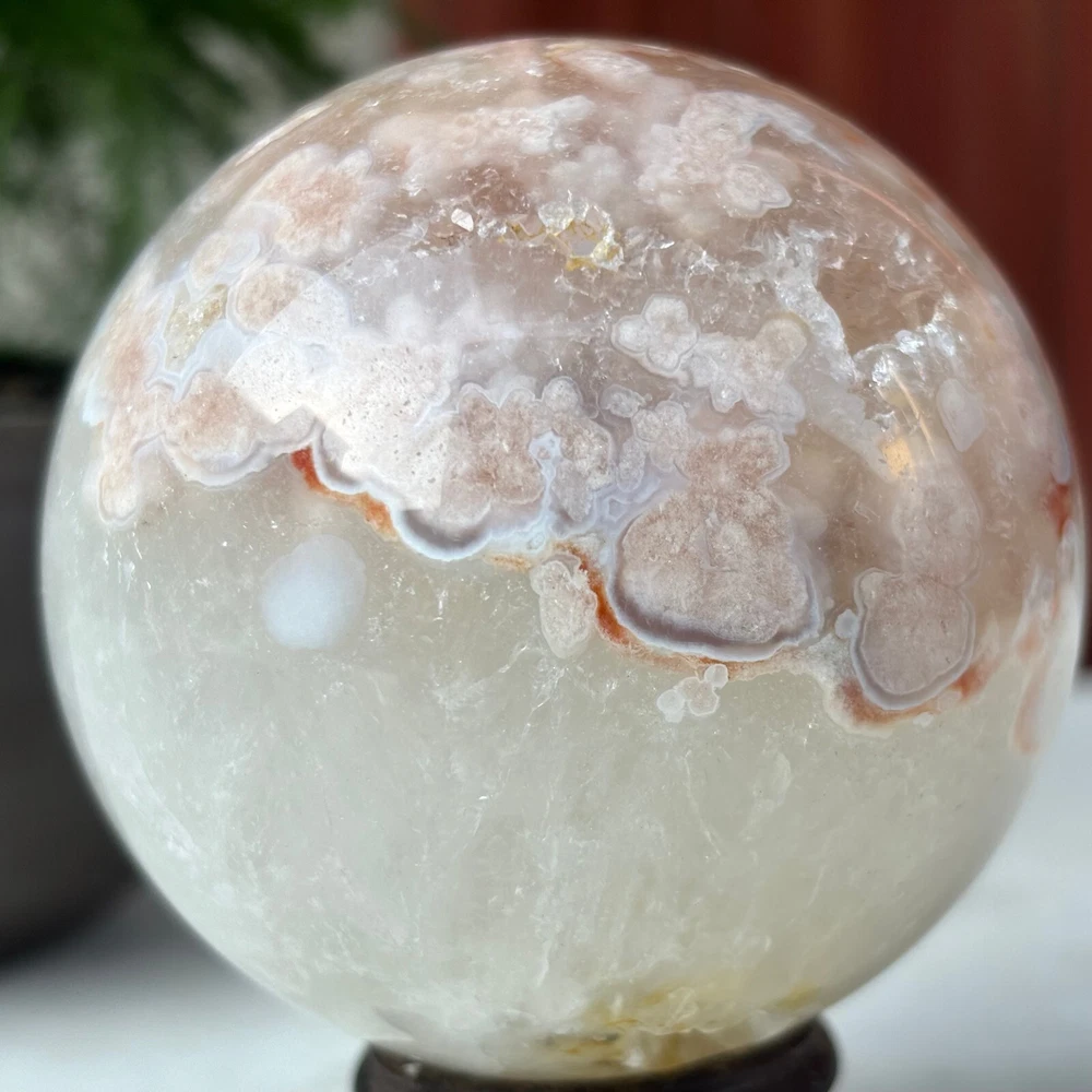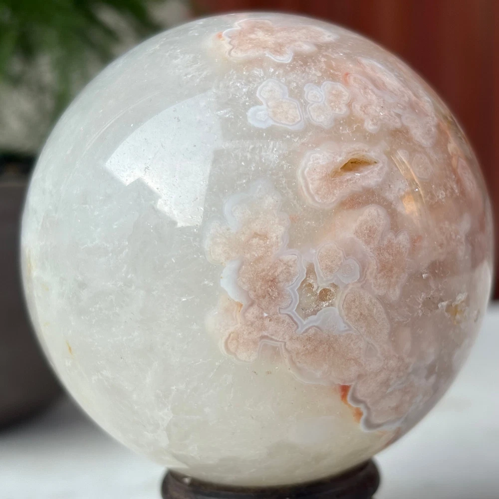 418g Natural Sakura Agate Quartz Sphere Crystal Ball Reiki Healing Decoration