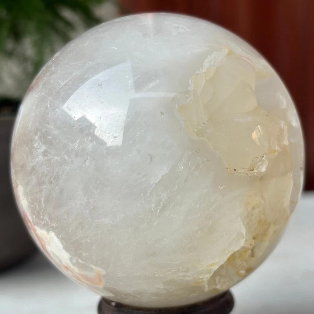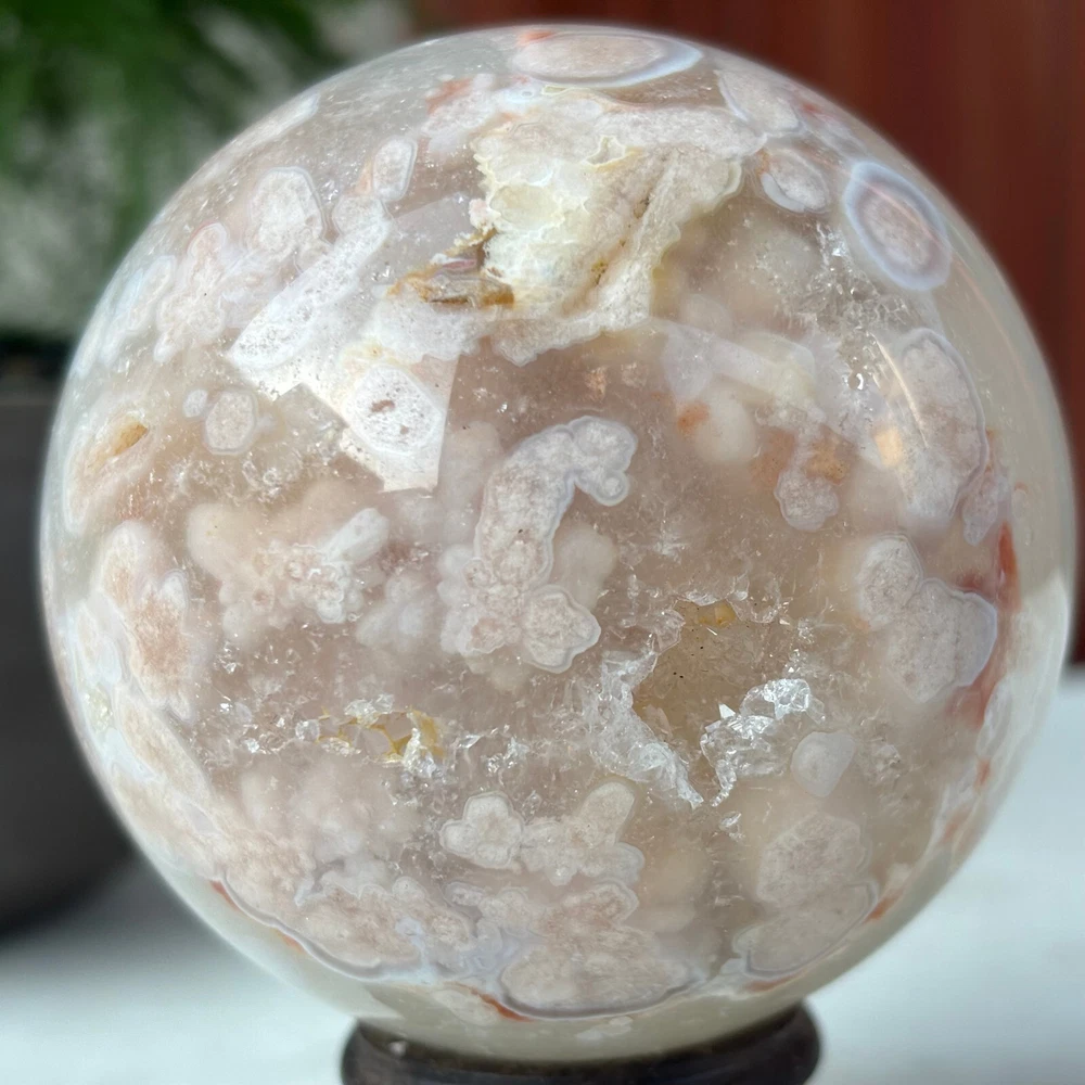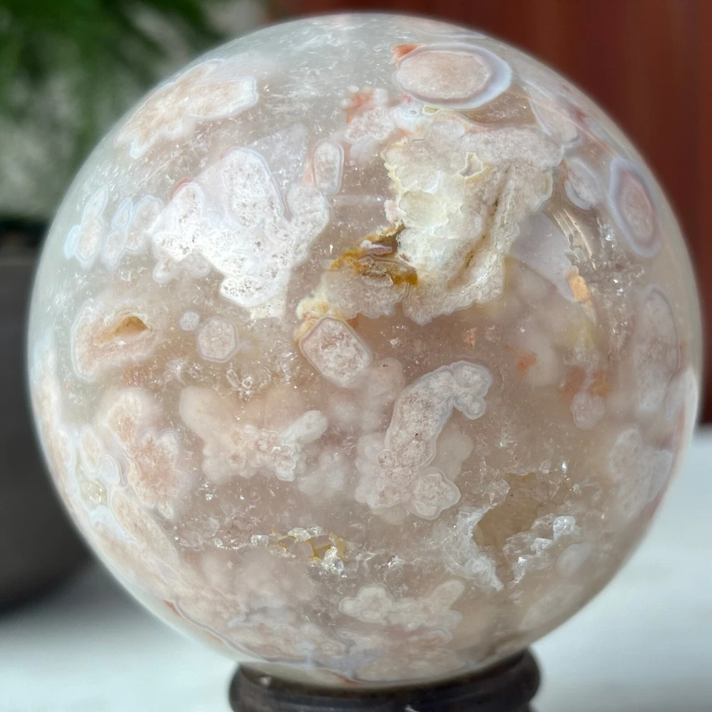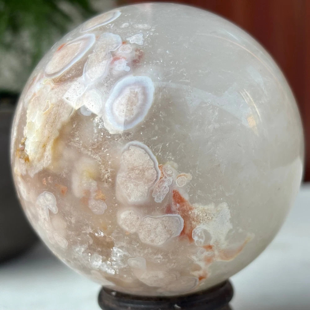 418g Natural Sakura Agate Quartz Sphere Crystal Ball Reiki Healing Decoration