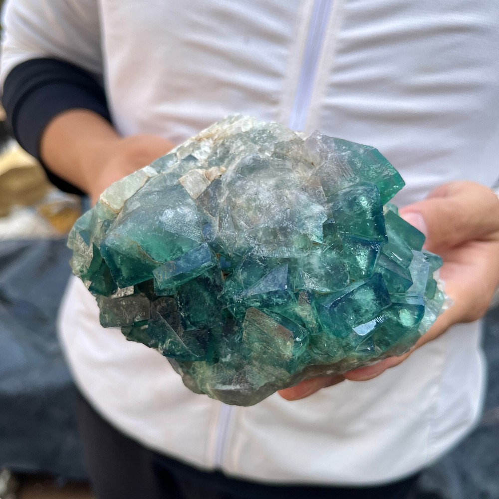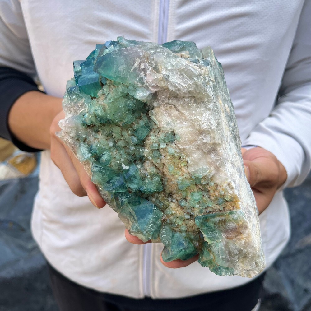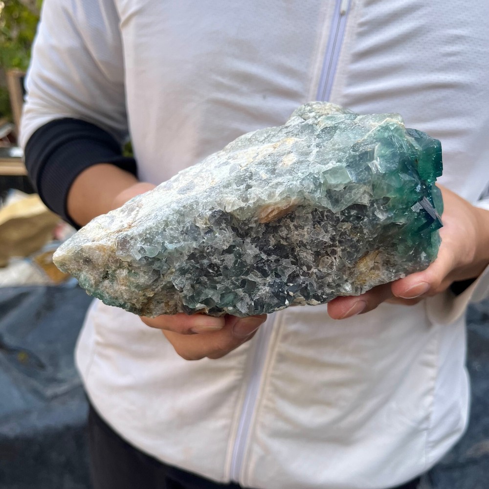 Amazing blue green hues in the fluorite. Item got here super quickly and it was wrapped completely in bubble wrap and tape. It looks exactly like the picture. It’s a solid chonk of a rock with interesting white flecks of crystal on the bottom. A+ transaction!!!