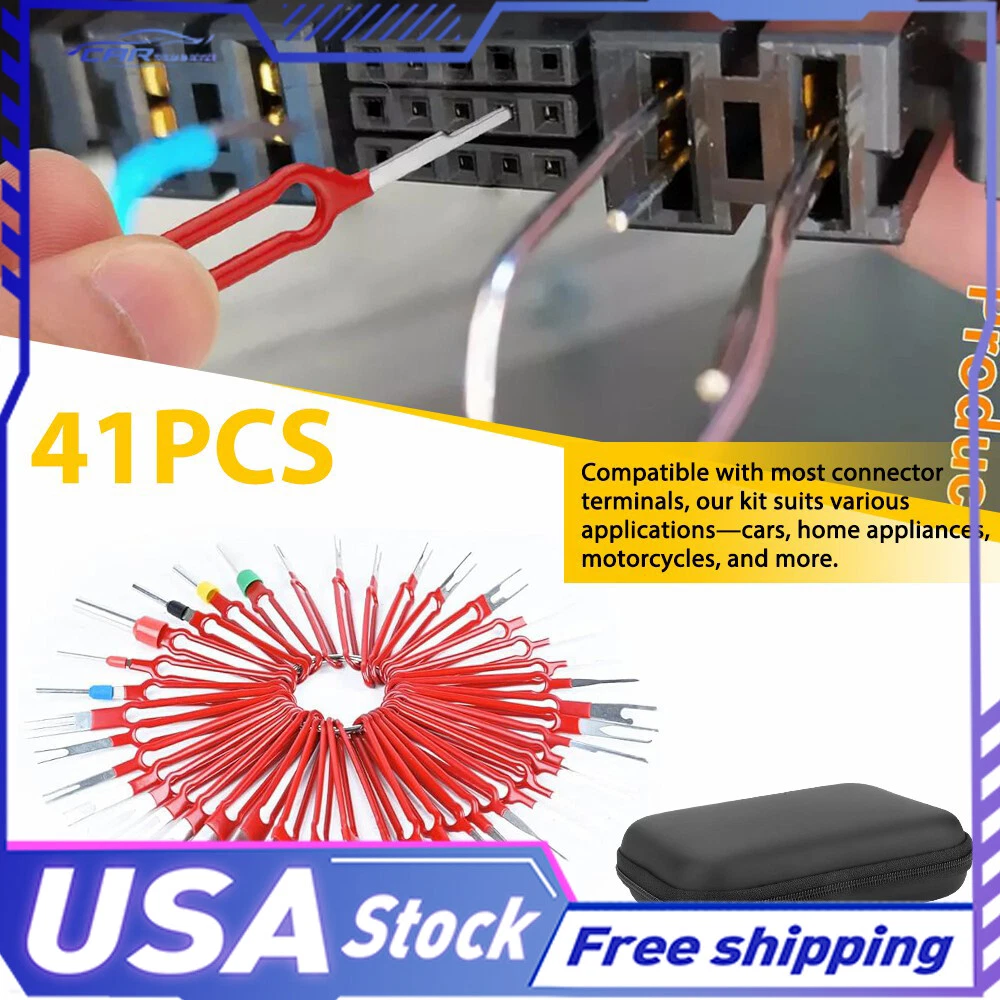 Fit for: Compatible with most connector terminals, our kit suits various applications—cars, home appliances, motorcycles, and more. Specifications: Product Material: Stainless steel 301+plastic Color: Blue ? Features: *High-quality Terminal Tool Made of high-quality stainless steel and durable plastic to ensure our long-term use without deformation. *Easy to Use The electric needle removal tool is easy to use, push and pull the terminal pin with the connector needle removal tool, you can effortlessly remove from the wire harness connector without causing any damage. *Portable 41PCS Terminal Removal Tool Car Ejector Pin Wire Kit Connector Puller Extractor Fit for: Compatible with most connector terminals, our kit suits various applications—cars, home appliances, motorcycles, and more. Specifications: Product Material: Stainless steel 301+plastic Color: Blue ? Features: *High-quality Terminal Tool Made of high-quality stainless steel and durable plastic to ensure our long-term use without deformation. *Easy to Use The electric needle removal tool is easy to use, push and pull the terminal pin with the connector needle removal tool, you can effortlessly remove from the wire harness connector without causing any damage. *Portable The pin removal tool set includes a protective bag for easy storage and portability. Small and lightweight, it is suitable for use anytime,anywhere. *Wide Application Suitable for various connector terminals in automobiles, motorcycles and electronic vehicles, the terminal ejection kit is widely used and reliable. *Quality Test All products were tested for performance and to ensure the accurate parameter for your vehicle. Packaging Include: 41 x Terminal Removal Tools 1 x Protective Bag Item Specifics Brand : Unbranded Universal Fitment : Yes Product Material : Stainless steel 301 plastic Color : Red Type : Terminal Removal Tool Design : Long-handle design Manufacturer Warranty : 1 Year Packaging Include 1 : 41 x Terminal Removal Tools Packaging Include 2 : 1 x Protective Bag Features 1 : High-quality Terminal Tool Features 2 : Easy to Use Features 3 : Portable Features 4 : Wide Application Features 5 : Quality Test Fit for 1 : Compatible with most connector terminals, Fit for 2 : cars, home appliances, motorcycles, and more. Payment (1) Instant PayPal payment is the preferred method of payment. (2) We also accept payment via PayPal, DebitCard, Visa, MasterCard, Discover. (3) We will only ship to the confirmed PayPal shipping address given with the payment. (4) If you want to ship to other address, please change your PayPal shipping address before you make payment. (5) To avoid initiating an unpaid item claim, please pay within 7 days. Shipping (1) We will ship your item(s) within 24 hours. (2) We ship this item to US usually via USPS first class mail. It usually takes 3-6 working days to deliver. Returns (1) We offer free return & money back guarantee. If you are not satisfied with your purchase for any reasons, you can return the item for refund or replacement/exchange. All returns must include the original packaging. (Please refer to our return policy for details.) (2) If you don't return goods within 60 days from date of purchase, your right to cancel will be revoked. Any items damaged because of incorrect installation will not be refunded. Please contact us for return or troubleshooting help prior to returning any products. (3) Unauthorized reselling of AUXITO products is strictly prohibited and we can't honor the warranty if purchasing from the unauthorized reseller. Contact Us [Our office hours are MONDAY - Saturday 9:00PM - 6:00PM PST, but we will response you once we get your message .There will be some delay on respons if you send message or E-Mail on Sundy.] (1).Negative feedback will not help resolve any problems you have, please contact us via eBay messages before leaving negative feedback, our customer service will make best effort to help you with the issues. (2).We maintain high standards of excellenceand strive for 100% customer satisfaction! Feedback is very important to us. We request that you contact us immediately BEFORE you give us neutral or negative feedback, so that we can satisfactorily address your concerns. FAQ Why swith to LED? LEDs not only give your vehicle a clean, modern look but, with proper use, will outlast any halogen bulb and HID bulb! Low energy draw, high lumen output, and instant on/off LED technology out shines stock bulbs in every way. Which bulbs are used in my vehicle? Check Sylvania automotive lamp replacemnt guide, you can select the year, make, and model of your vehicle, then select the application you want to replace or upgrade from stock. What does CAN Bus mean? CAN Bus means Controller Area Network Bus. This system monitors your vehicle and reports operating conditions. CAN Bus systems are commonly found in European vehicles such as BMW, Audi, Mercedes, Volkswagen, Porsche, and in many American vehicles. While most late model American vehicles have CAN Bus systems, it is always good to check with your vehicle dealer to see which system your vehicle has before purchasing electrical products. When do you need Warning Canceller? Some vehicles with cmplex internal computers(such as Audi,BMW,Jaguar,Mercedes,etc.) might report on-dash errors or flickering on the headlights. The warning canceller fixes the dashboard warning and flickering effect. Bulb Out Dashboard Error: On some vehicles, the dashboard will report as if you have a headlight bulb missing or burnt. It does not affect the headlights functioning, but the light on-dash will be on. The warning canceller fixes the issue. Flickering Issue: This happens when your vehicle does not recognize the new headlights installed. When turning the headlights on, the vehicle's computer does not understand the signal back from the headlights hence thinking they are still off. This triggers the headlight flickering effect. The warning canceller solves this issue. LED Advanta